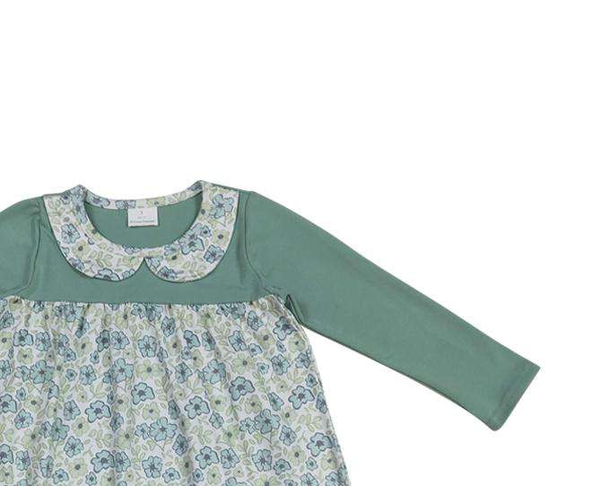 เดรสแขนยาวสำหรับเด็กผู้หญิงชุดเดรสแขนยาวผ้าโพลีเอสเตอร์/ ผ้าฝ้ายลายดอกไม้สีฟ้า