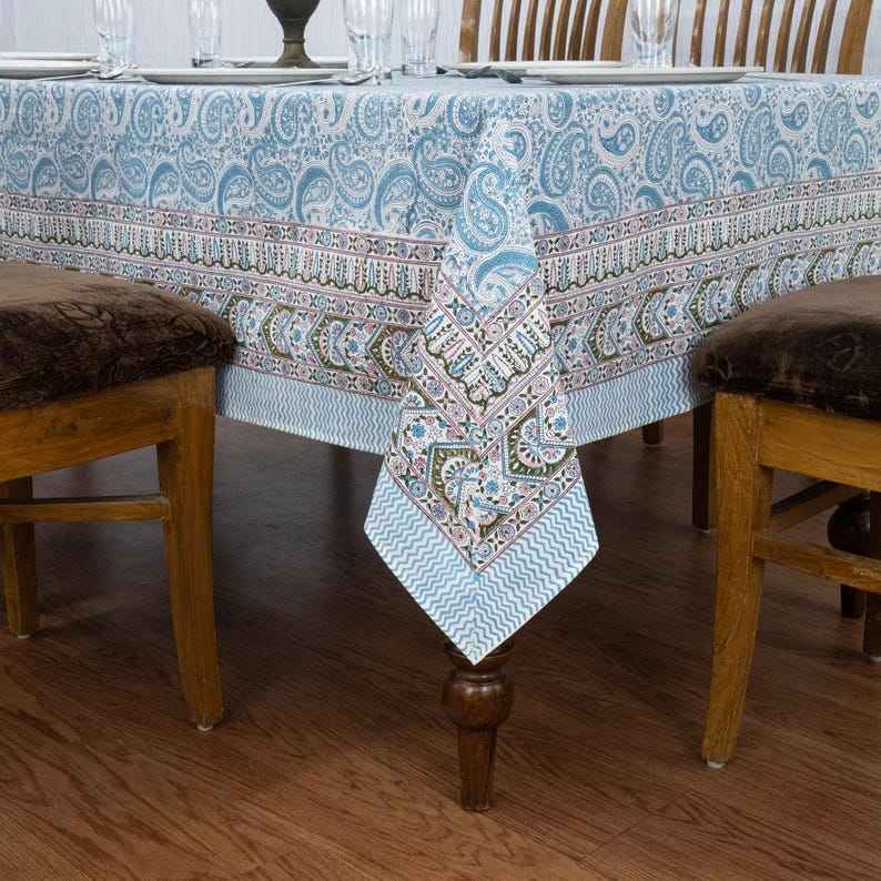 ผ้าปูโต๊ะผ้าฝ้ายอินเดียพิมพ์ลายดอกไม้สีฟ้าคลุมโต๊ะรับประทานอาหาร