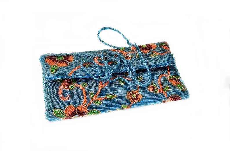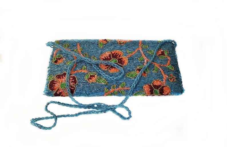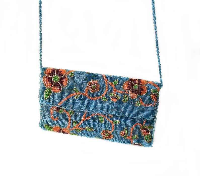 กระเป๋าลูกปัดแฮนด์เมดลายดอกไม้สีฟ้ากระเป๋าดีไซน์เนอร์กระเป๋าคลัทช์แฟชั่นสำหรับงานเลี้ยงตอนเย็นกระเป๋าถือลูกปัดสายสะพายไหล่กระเป๋าถือลูกปัดกระเป๋าวันเกิด
