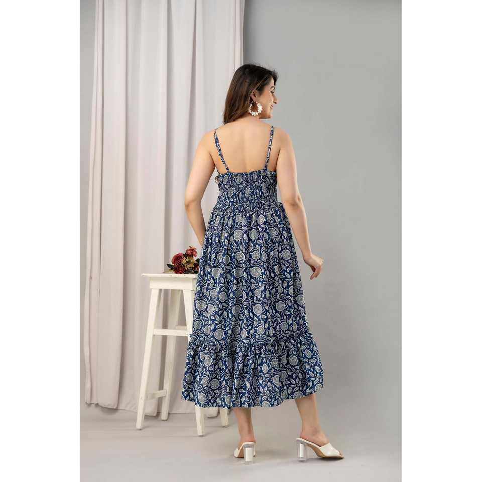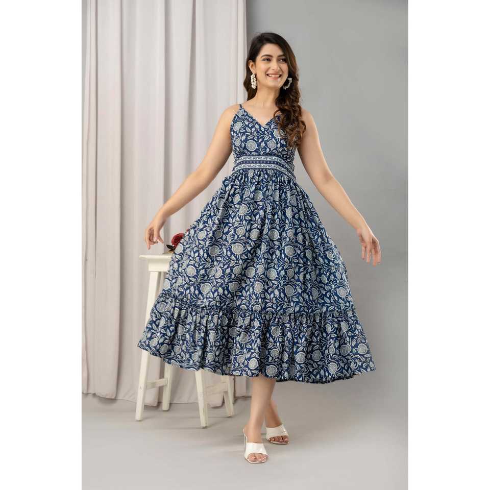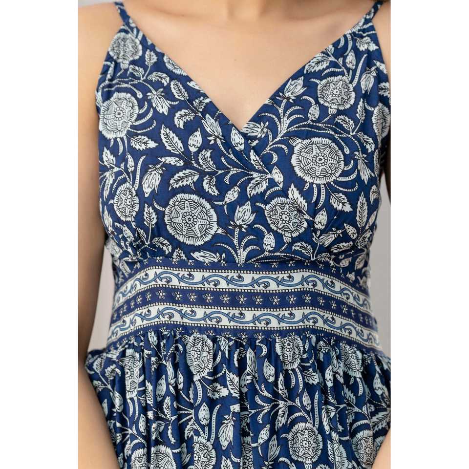 Blue Floral Printed Sleeveless Fit and Flare Maxi Dress-SHKUP1444