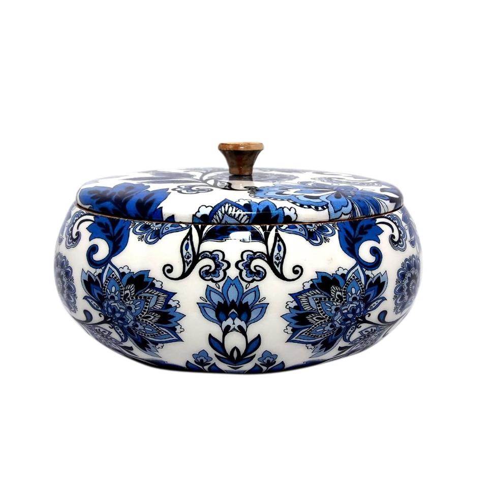 หม้ออุ่นอาหารทำจากไม้พิมพ์ลายดอกไม้สีฟ้าทำจากไม้คุณภาพสูงขนาด22X11เซนติเมตร