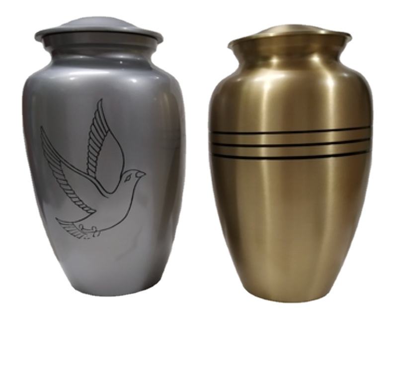 โกศโลหะสำหรับผู้ใหญ่ขี้เถ้าดอกไม้สีฟ้าสำหรับใส่เถ้ากระดูกของมนุษย์และแมวพร้อมคุณสมบัติพิมพ์ลาย