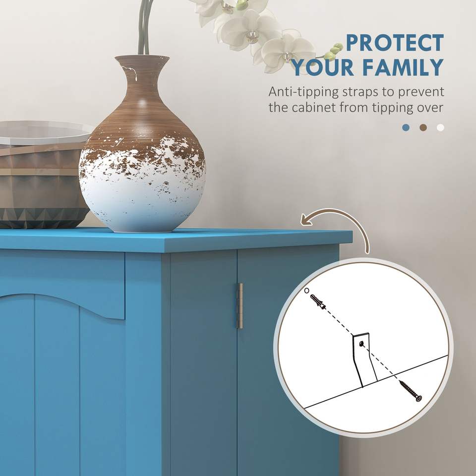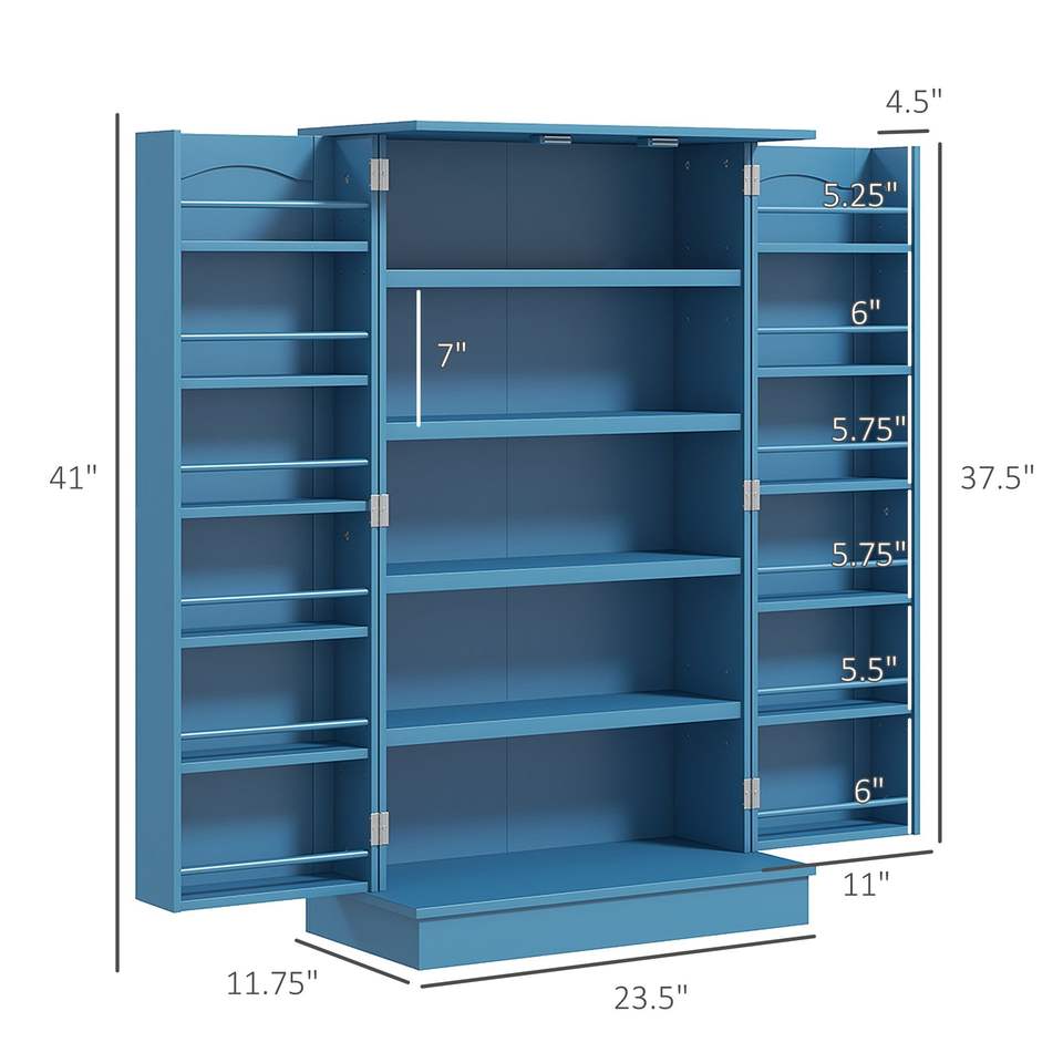 Blue Freestanding 5-Tier Shelving Kitchen Pantry Cabinet with 12 Door Shelves and Double Doors