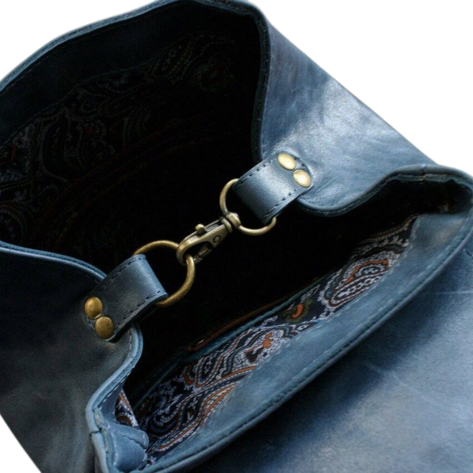 กระเป๋าเป้สะพายหลังหนังแท้สีน้ำเงินสำหรับผู้หญิง ดีไซน์หรูหราบุด้วยหนังกลับ พร้อมฮาร์ดแวร์ทนทาน ขายส่งราคาพิเศษ