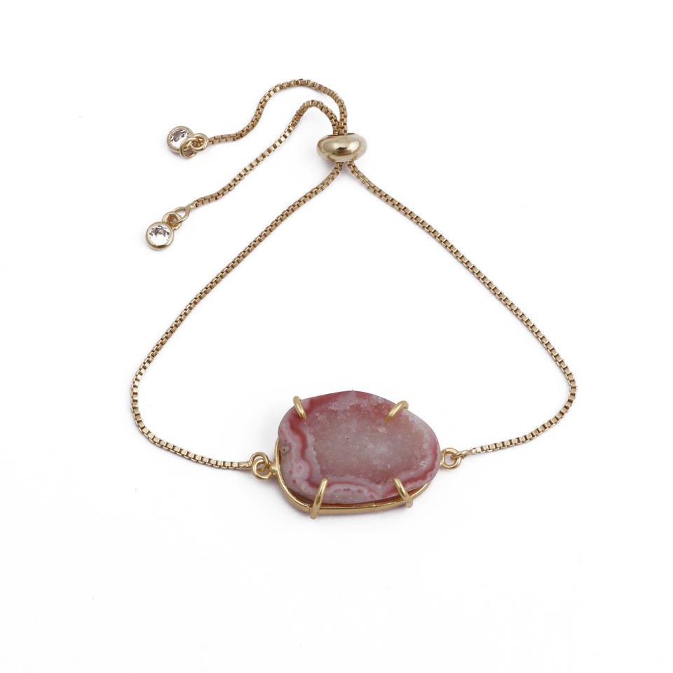 Blue Geode Druzy Crystal Adjustable Bracelet Gold Plated Brass Prong Setting Semi-Precious Healing Stone Trendy Style