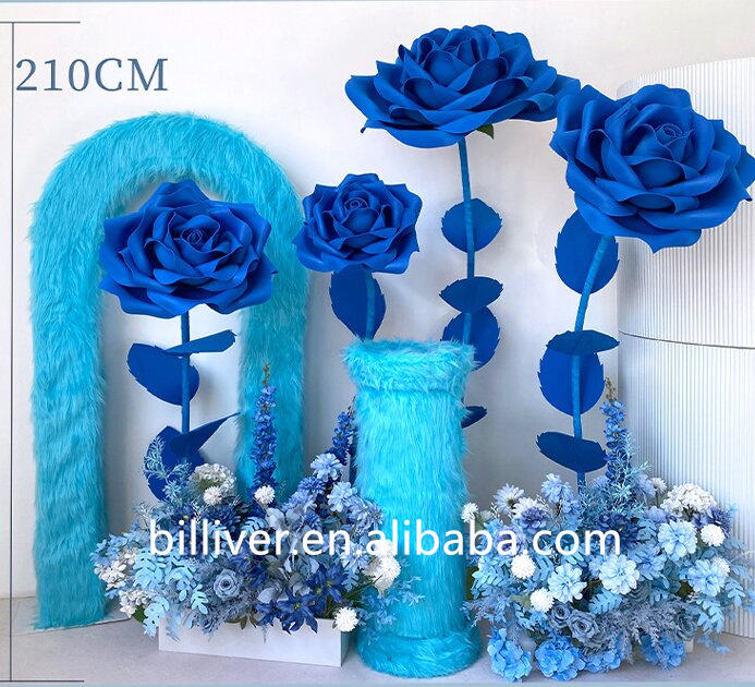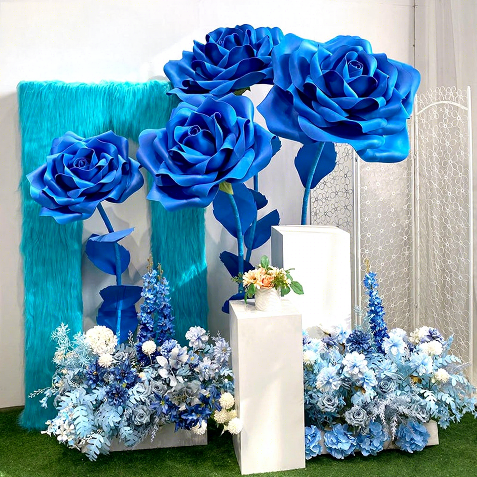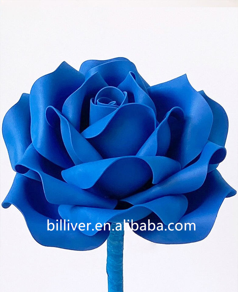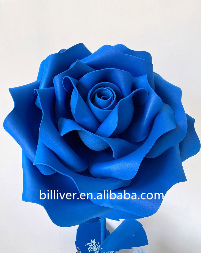 ดอกไม้โฟมยักษ์สีน้ำเงินพร้อมก้าน ดอกไม้ประดิษฐ์จากโฟมตกแต่ง ดอกกุหลาบ สำหรับงานแต่งงาน วันวาเลนไทน์ ตกแต่งหน้าต่างห้างสรรพสินค้า