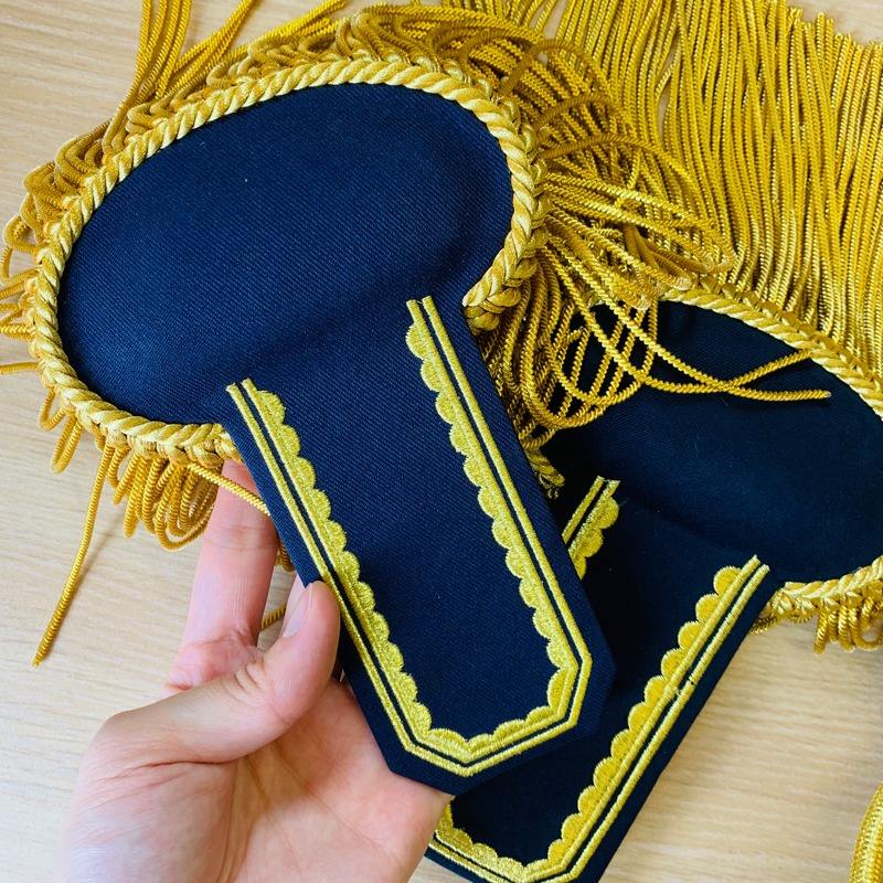 Blue Gold Brass Fabric Shoulder Epaulette for Marching Band Elegant Fringe Detail Customized Color Defense Equipment
