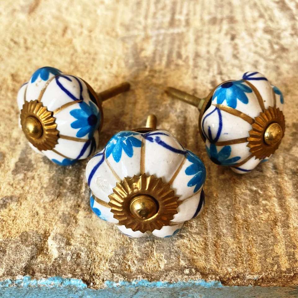 ลูกบิดเซรามิกรูปดอกไม้สีฟ้าและสีทองปรับขนาดได้ตามต้องการสินค้าในอินเดีย