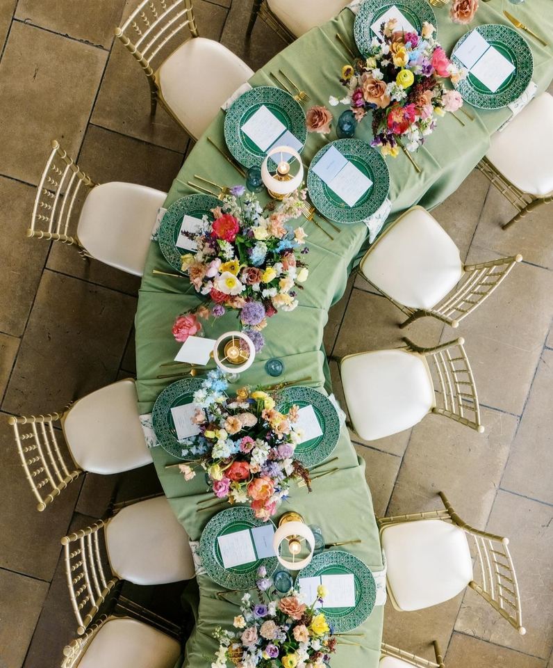 พวงมาลัยสีฟ้า เขียว ม่วง ประดับพื้นหลังสีแดง ดอกไม้ประดิษฐ์สีขาว สำหรับตกแต่งโต๊ะงานแต่งงาน ซุ้มดอกไม้สีแชมเปญ