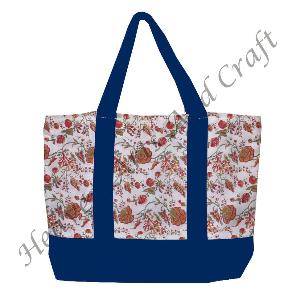 กระเป๋าผ้าหิ้วพิมพ์ลายด้วยมือจากอินเดีย ลายดอกไม้หลากสี พร้อมสายสะพายสองเส้น ขายส่ง BHCB011