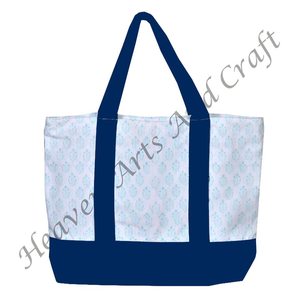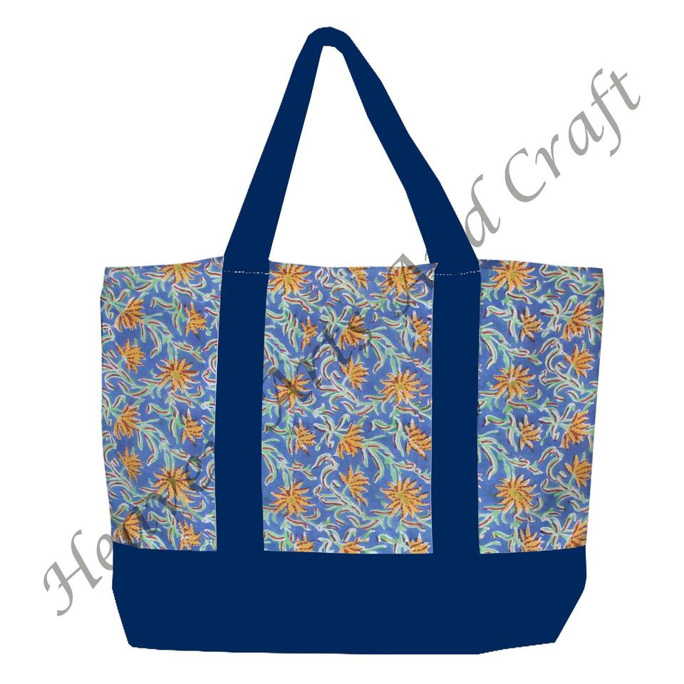 กระเป๋าผ้าหิ้วพิมพ์ลายด้วยมือจากอินเดีย ลายดอกไม้หลากสี พร้อมสายสะพายสองเส้น ขายส่ง BHCB051