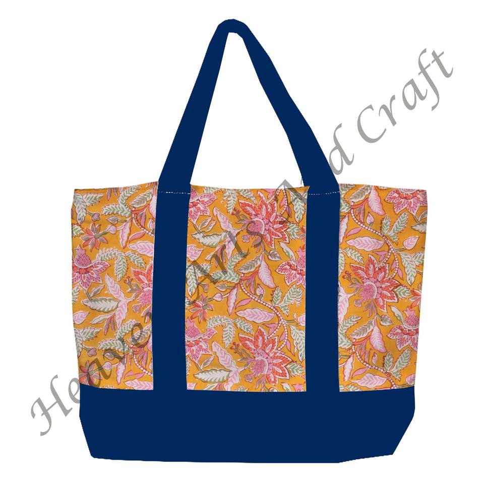 กระเป๋าผ้าหิ้วพิมพ์ลายด้วยมือจากอินเดีย ลายดอกไม้หลากสี พร้อมสายสะพายสองเส้น ขายส่ง BHCB081