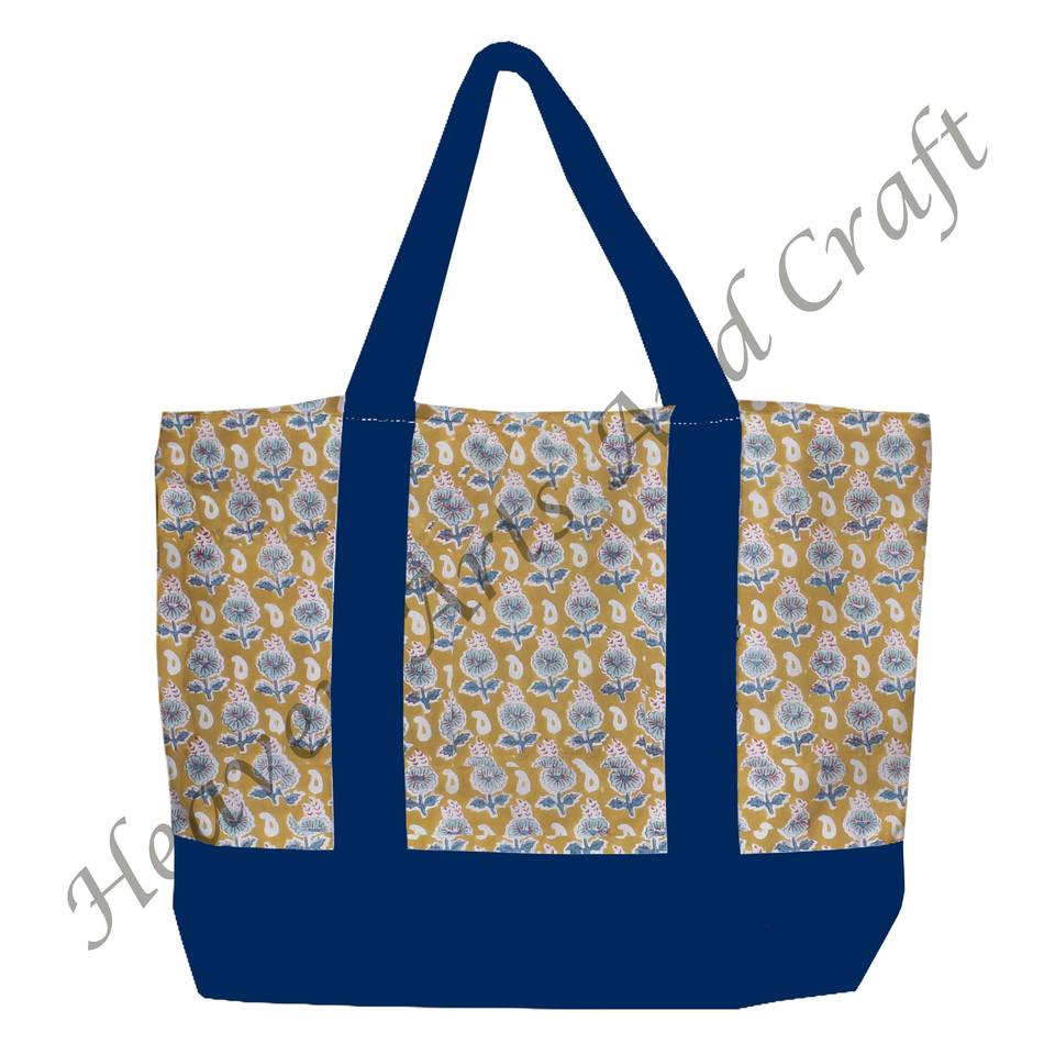 กระเป๋าผ้าหิ้วพิมพ์ลายด้วยมือจากอินเดีย ลายดอกไม้หลากสี พร้อมสายสะพายสองเส้น ขายส่ง BHCB025