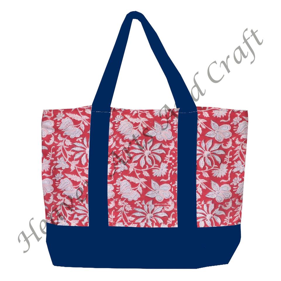 กระเป๋าผ้าหิ้วพิมพ์ลายด้วยมือจากอินเดีย ลายดอกไม้หลากสี พร้อมสายสะพายสองเส้น ขายส่ง BHCB102