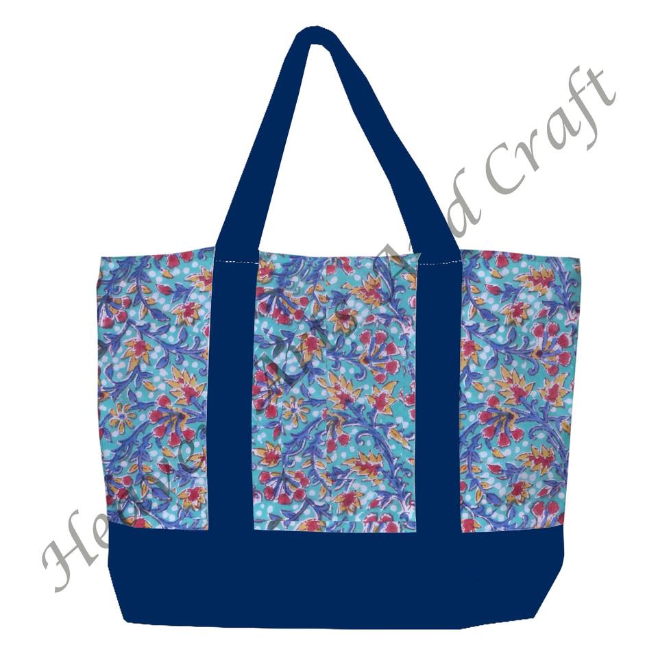 กระเป๋าผ้าหิ้วพิมพ์ลายด้วยมือจากอินเดีย ลายดอกไม้หลากสี พร้อมสายสะพายสองเส้น ขายส่ง BHCB066