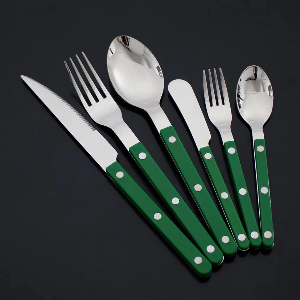 ชุดช้อนส้อมสแตนเลสสีน้ำเงิน สำหรับการรับประทานอาหารอย่างเป็นทางการ ใช้ในบ้าน ร้านอาหาร และโรงแรม นำเข้าจากอินเดีย