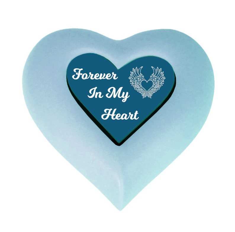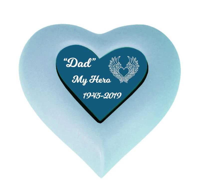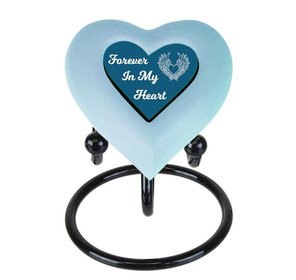 โกศรูปหัวใจสีน้ำเงินขี้เถ้าโกศออกแบบรูปหัวใจของชำร่วยเฉพาะบุคคลแกะสลักโลหะดีไซน์ใหม่ของชำร่วย