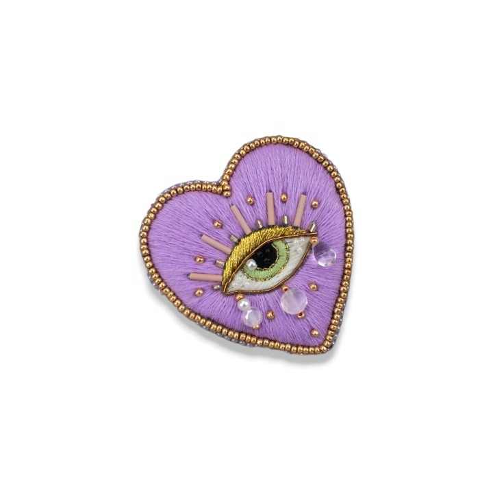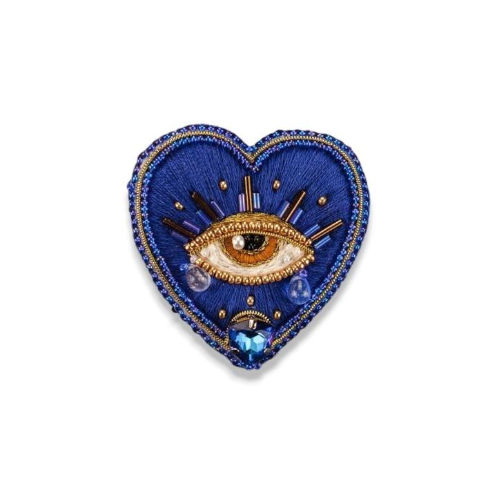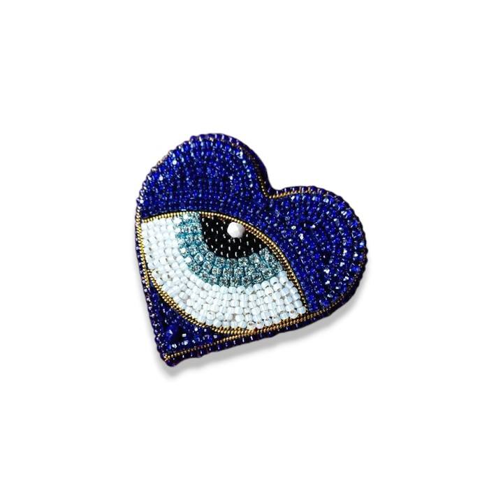เข็มกลัดพลอยเทียมรูปหัวใจสีน้ำเงินปักด้วยมือเข็มกลัดลูกปัดทำด้วยมือเข็มกลัดแฟชั่น