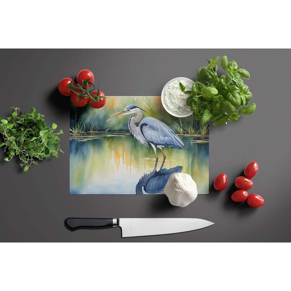เขียงกระจกนิรภัยสำหรับตัดตกแต่งรูปนกกระสาสีฟ้ากระดานเสริฟห้องครัวขนาดใหญ่สำหรับหั่นจานและจาน
