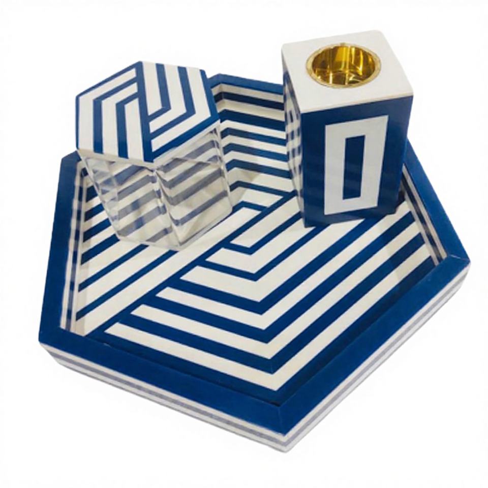 ชุดเครื่องหอมบาคูร์รูปทรงหกเหลี่ยมสีน้ำเงิน ประดับด้วยเรซิ่น ดีไซน์ทันสมัย ขนาด 8 นิ้ว จาก Tradnary Exim Pvt Ltd
