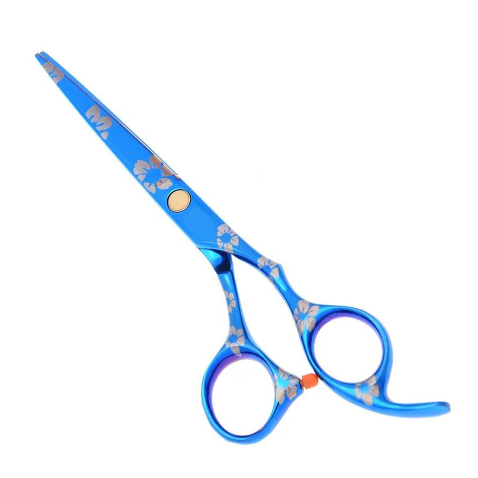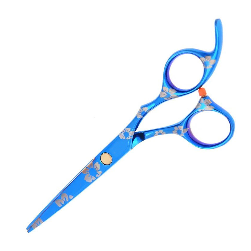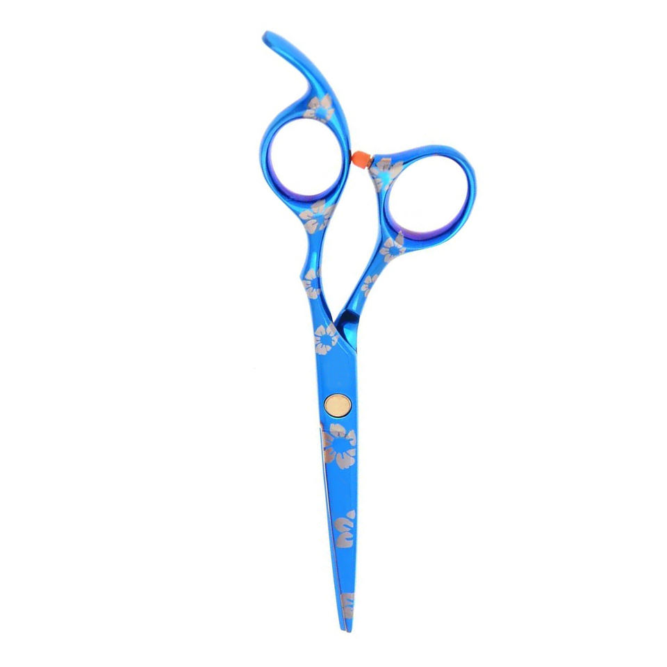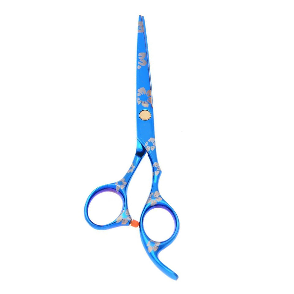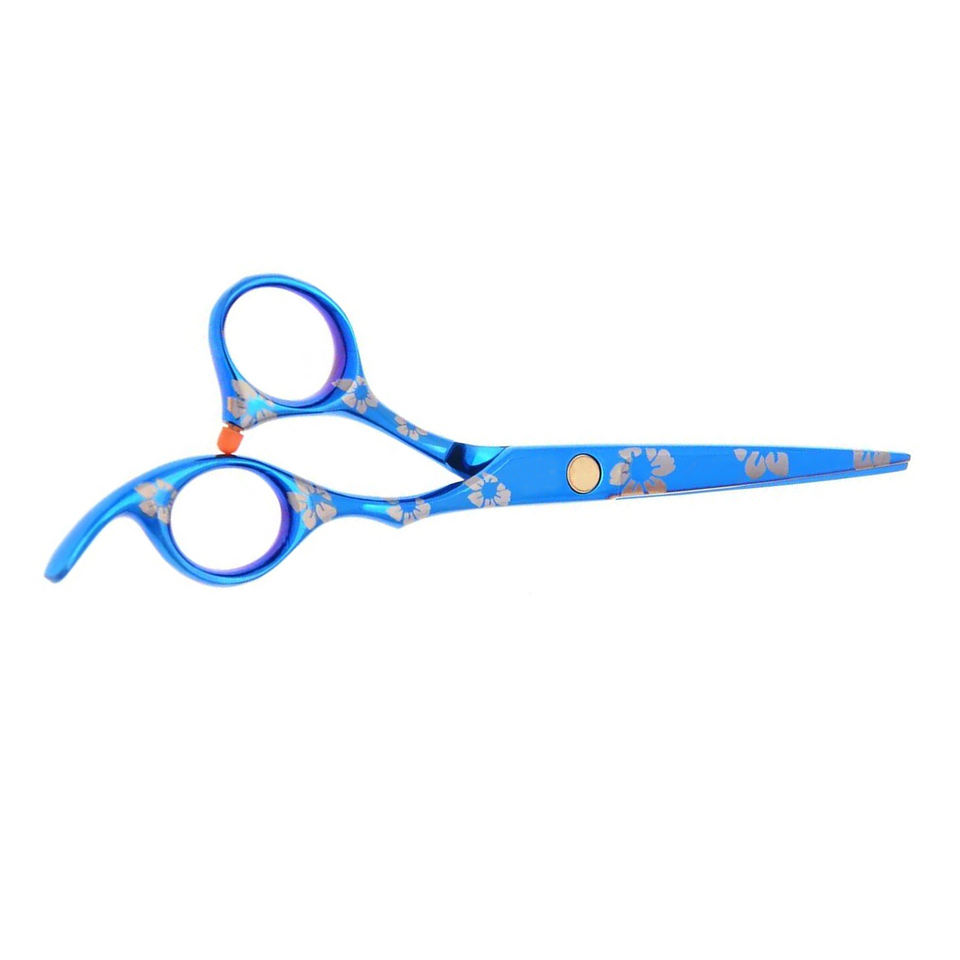 ชุดกรรไกรตัดผมทำจากสแตนเลสปลายแบนพิมพ์ลายดอกไม้สีน้ำเงิน