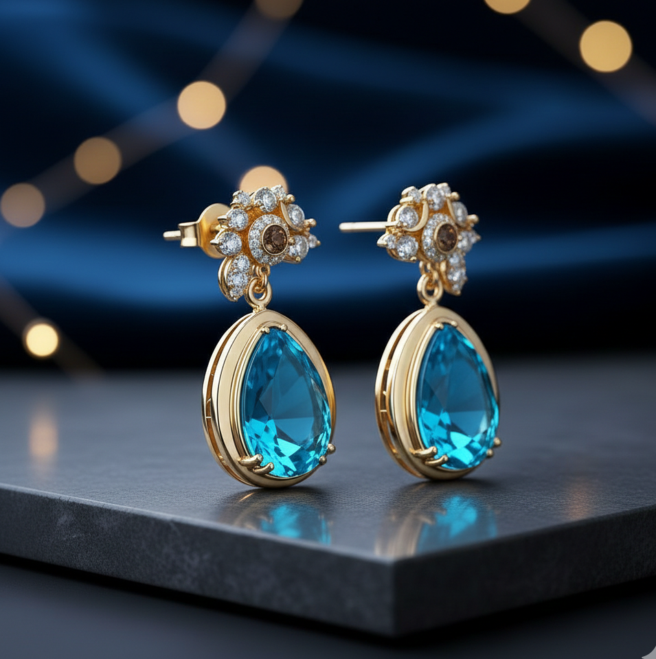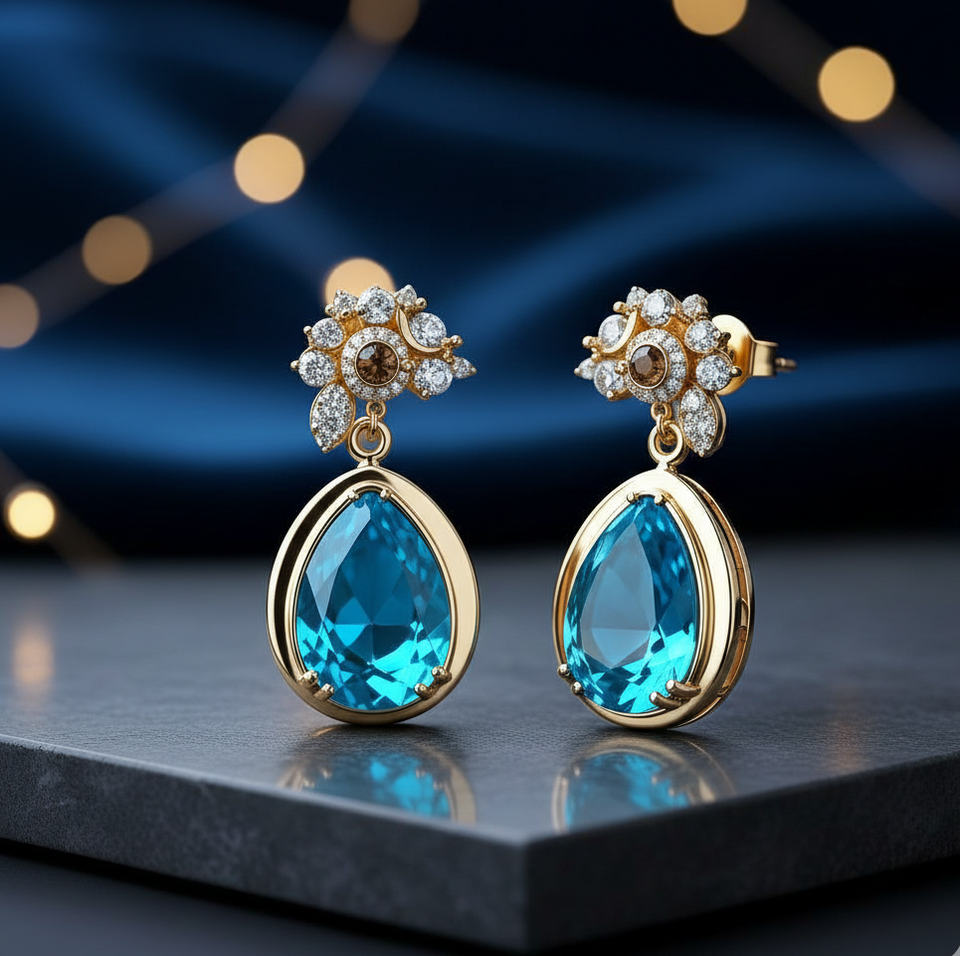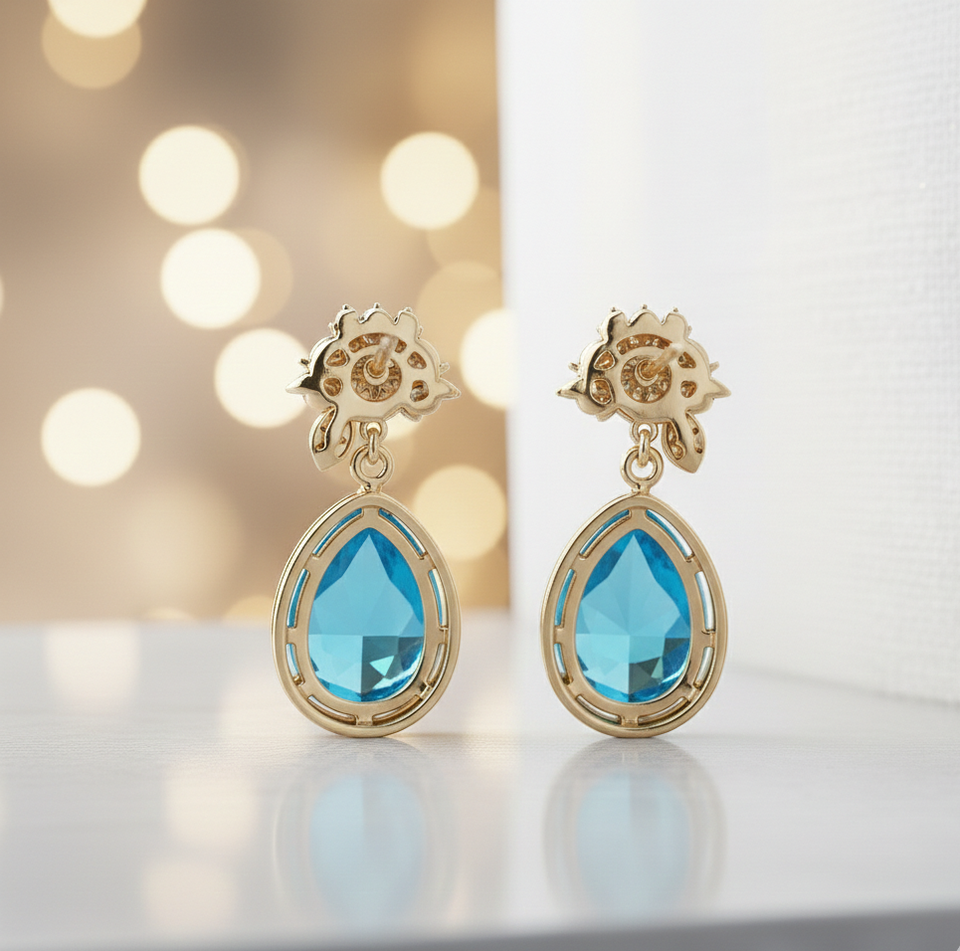 ต่างหูทรงหยดน้ำสีน้ำเงิน เงินแท้ 925 ชุบทอง 18K เครื่องประดับแฟชั่น งานจิวเวลรี่ชั้นดี เครื่องประดับเจ้าสาว สั่งซื้อจำนวนมาก