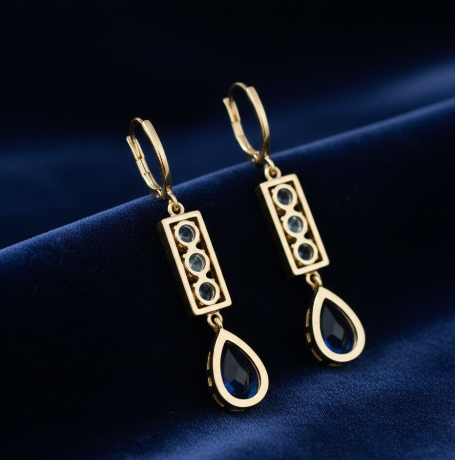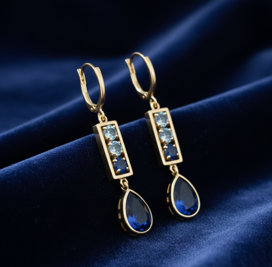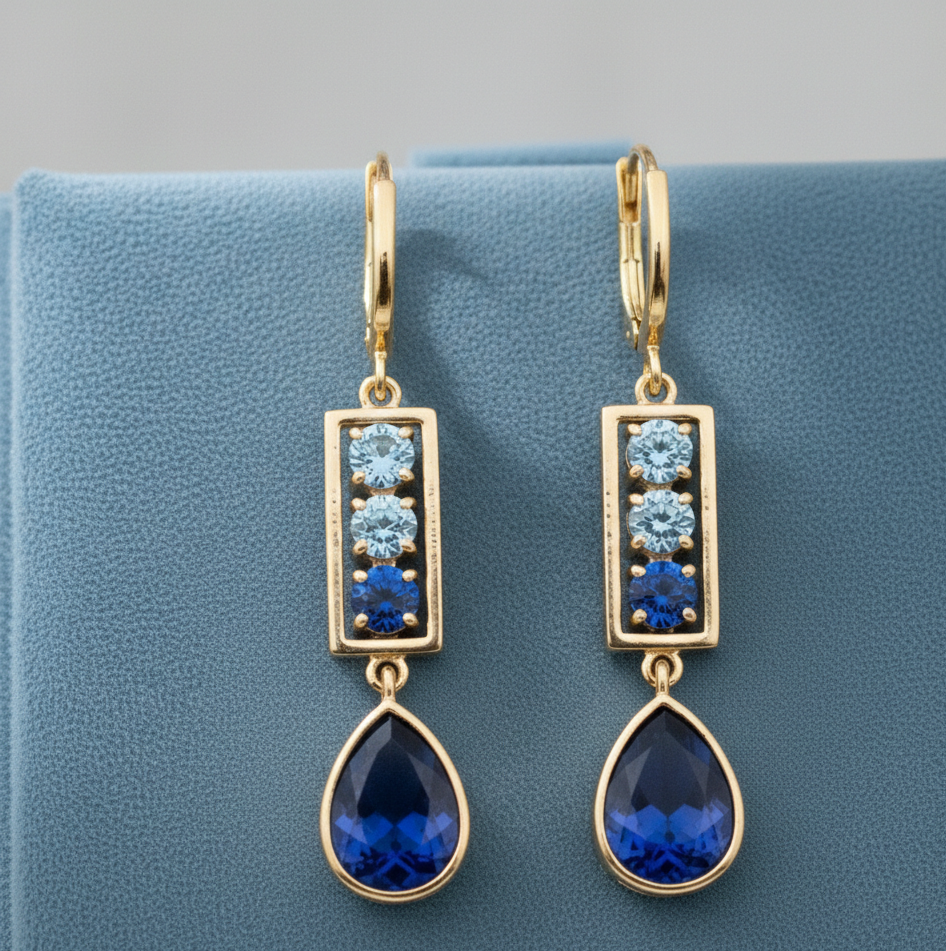ต่างหูทรงหยดน้ำสีฟ้าไฮโดรโทแพซ ขนาด 5 มม. รูปทรงหยดน้ำ ทำจากเงินแท้ 925 ชุบทอง 18K ความยาว 6 นิ้ว