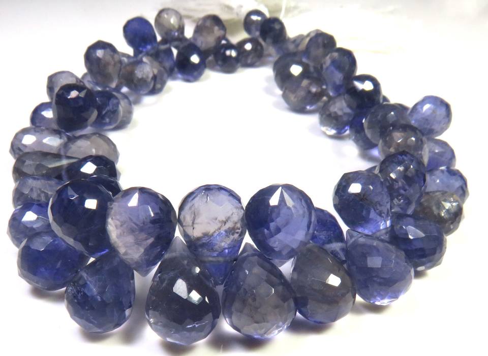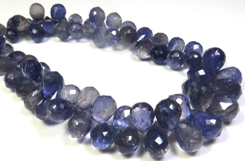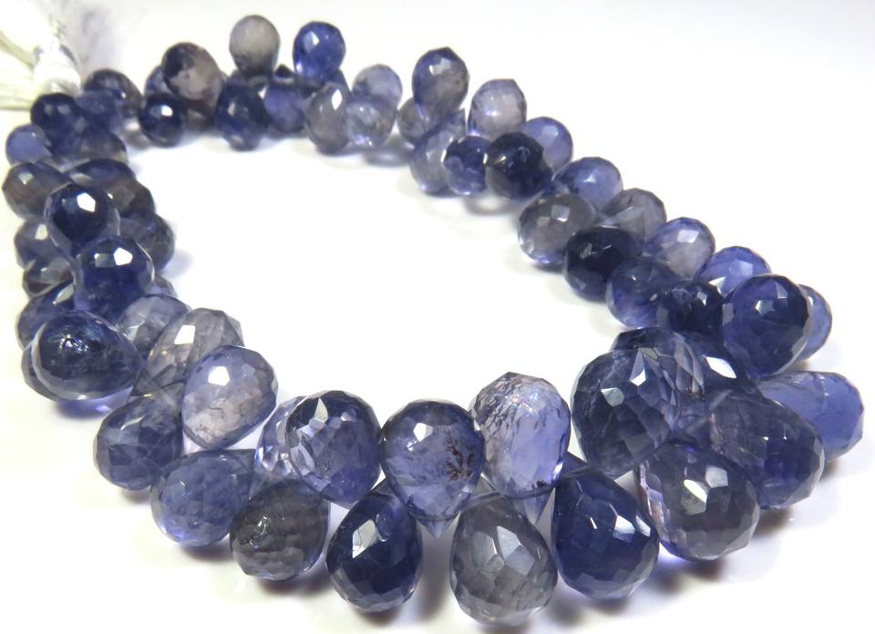 ลูกปัดพลอยบลูไอโอไลต์ทรงหยดน้ำเจียระไน ขนาด 9-13 มม. คอร์เดียไรต์ธรรมชาติ ความยาว 9 นิ้ว เกรดพรีเมียม สำหรับทำเครื่องประดับ