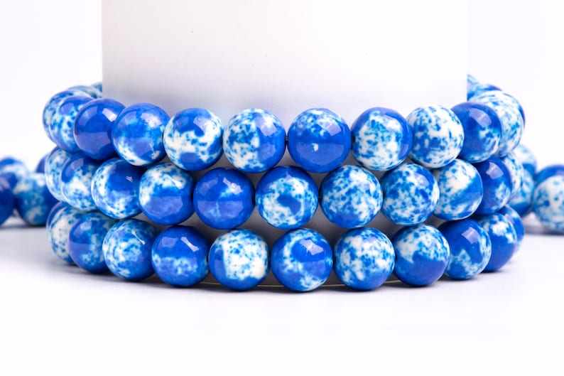 ลูกปัดหยกสีน้ำเงินเกรดพรีเมียมสำหรับทำเครื่องประดับ สร้อยข้อมือ สร้อยคอ งานฝีมือ DIY