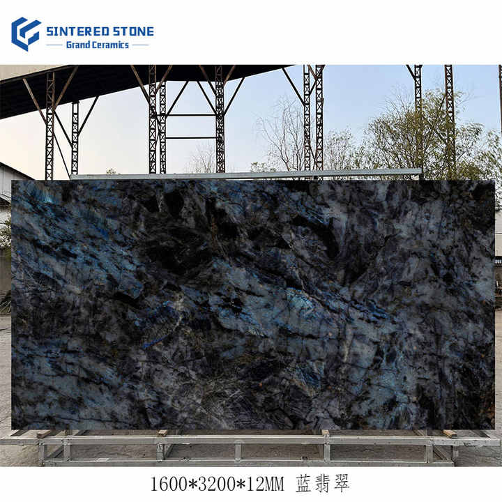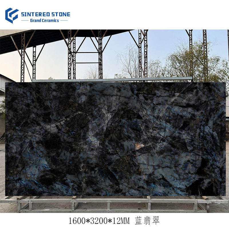 หินหยกสีฟ้าขนาด3200*1600*12มม. ขนาดใหญ่สำหรับห้องรับประทานอาหารผนังเคาน์เตอร์พื้นกำแพงกำแพงกำแพง backsplash Hall ซักรีดถนน