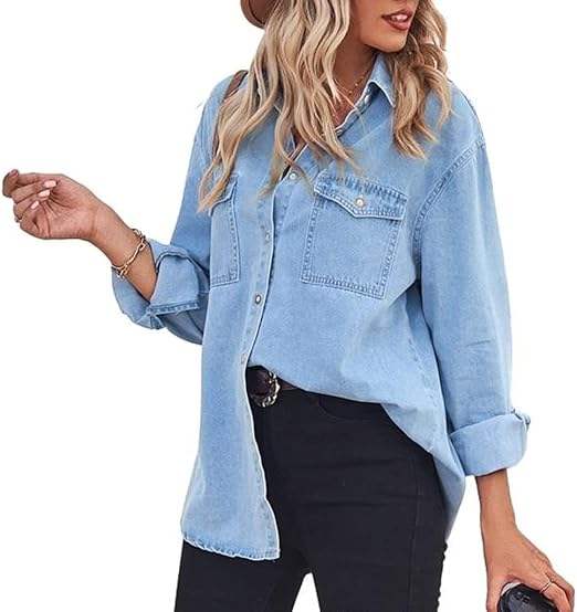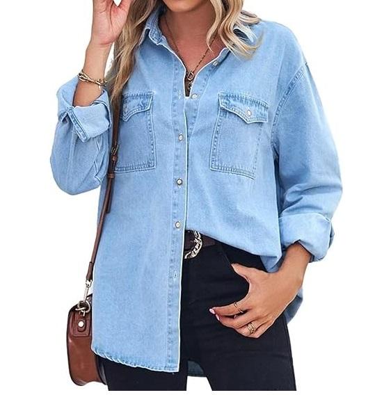 เสื้อเชิ้ตยีนส์สีน้ำเงิน เสื้อเดนิมลำลองสำหรับฤดูร้อน ทรงโอเวอร์ไซส์ ยืดหยุ่น ทนแดด กระดุมหน้า เสื้อเชิ้ตยีนส์ขายส่ง ระบายอากาศได้ดี