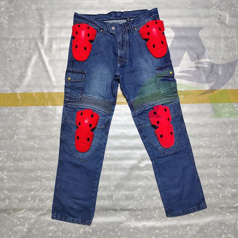 กางเกงยีนส์สีน้ำเงินกางเกงยีนส์ป้องกันสำหรับแข่งรถมอเตอร์ไซด์ที่ได้รับการรับรองระดับ2 CE