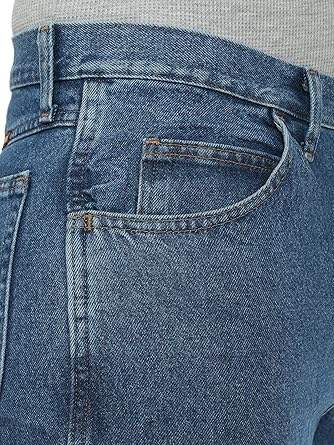 กางเกงยีนส์สีน้ำเงินขาตรงด้านหน้าแบนราบแบบลำลองสำหรับผู้ชายและผู้ใหญ่ผ้าออกซ์ฟอร์ดพอดีตัวปกติ