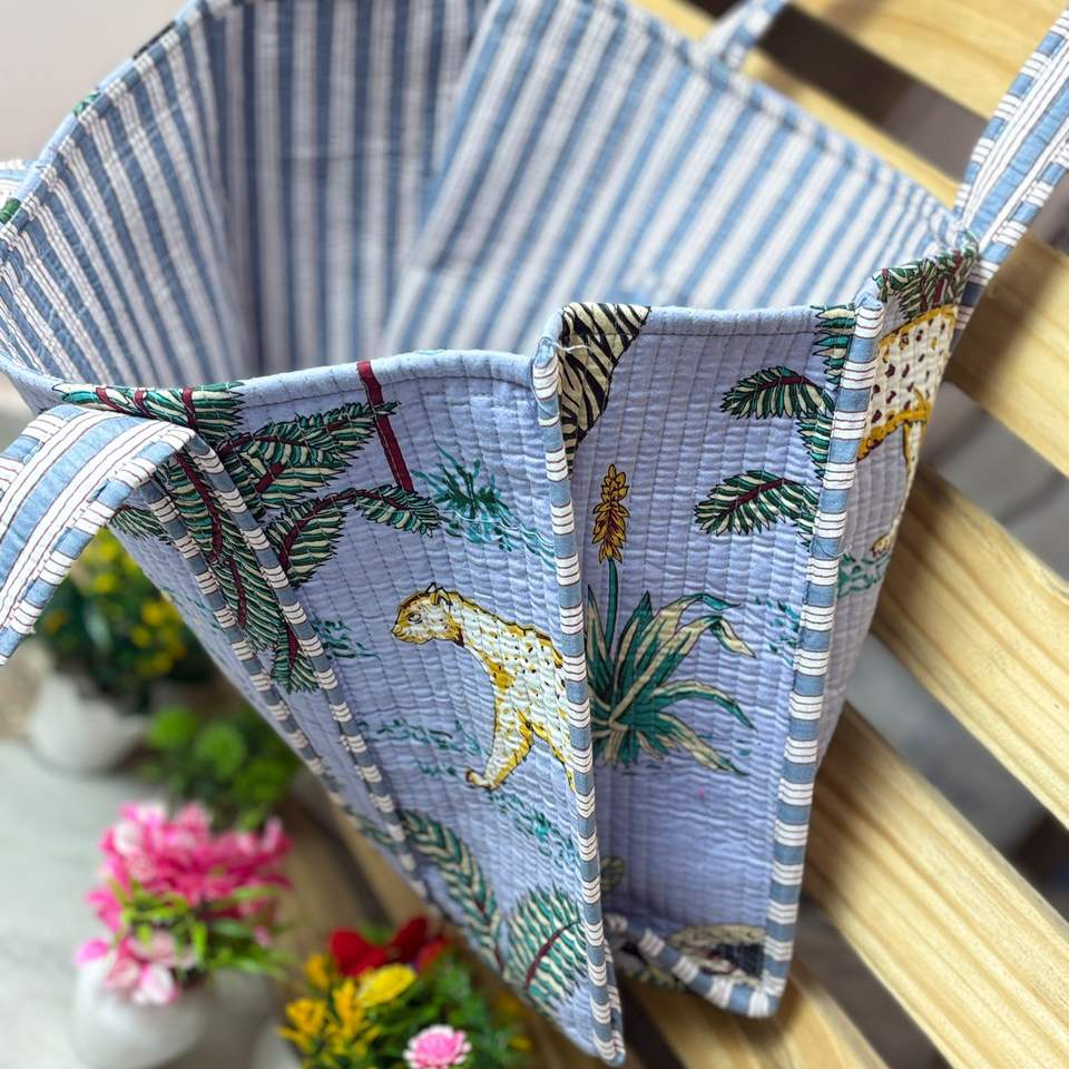 ชื่อ:กระเป๋าผ้าคันธาลายสัตว์ป่า สีฟ้า