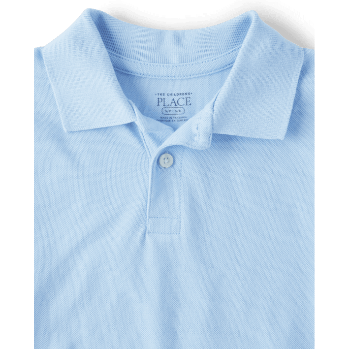 Fit & Design:Flat rib-knit collar, button placket, short sleeves