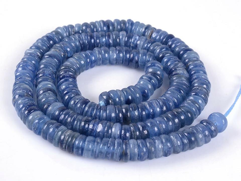 ลูกปัดหินไคยาไนต์สีน้ำเงินทรงเฮชิขนาด 6 มม. รู 1 มม. น้ำหนัก 35 กรัม 135 เม็ด สำหรับทำเครื่องประดับ