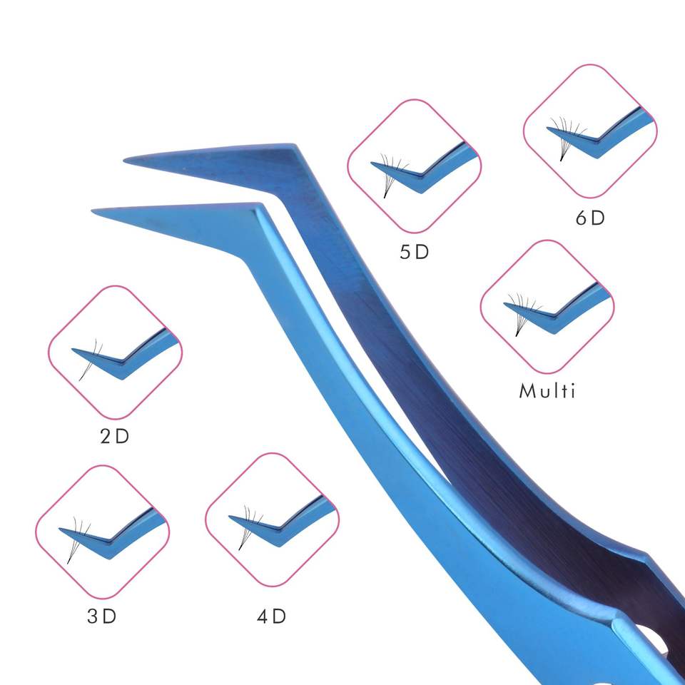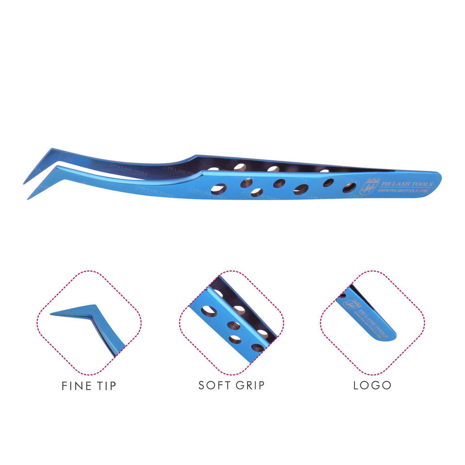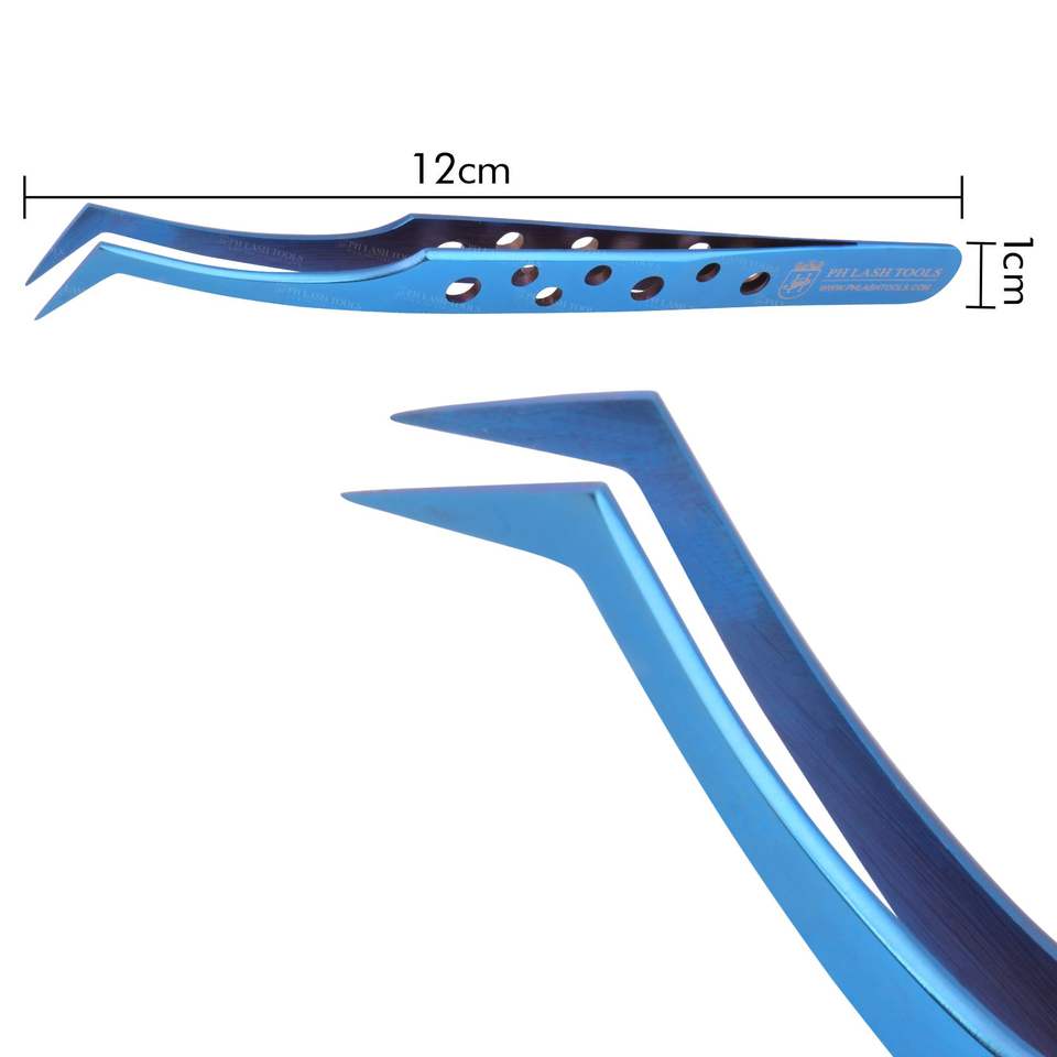 แหนบต่อขนตาชนิด L สีฟ้าพร้อมป้ายกำกับส่วนตัว,แหนบสีน้ำเงิน75deg ชนิด L สำหรับต่อขนตา