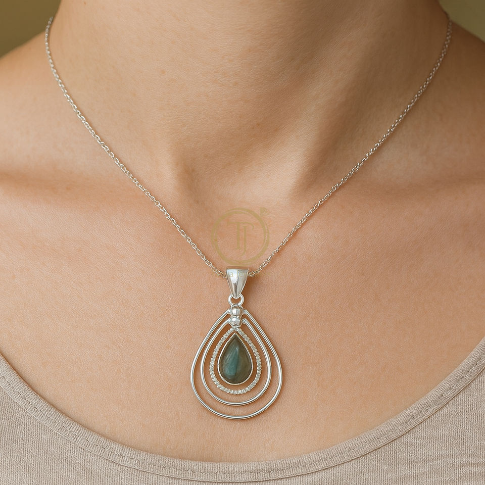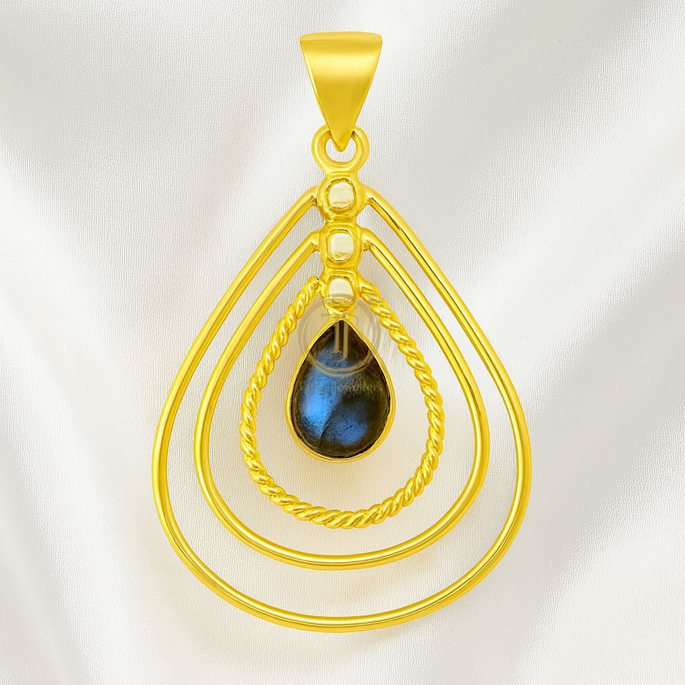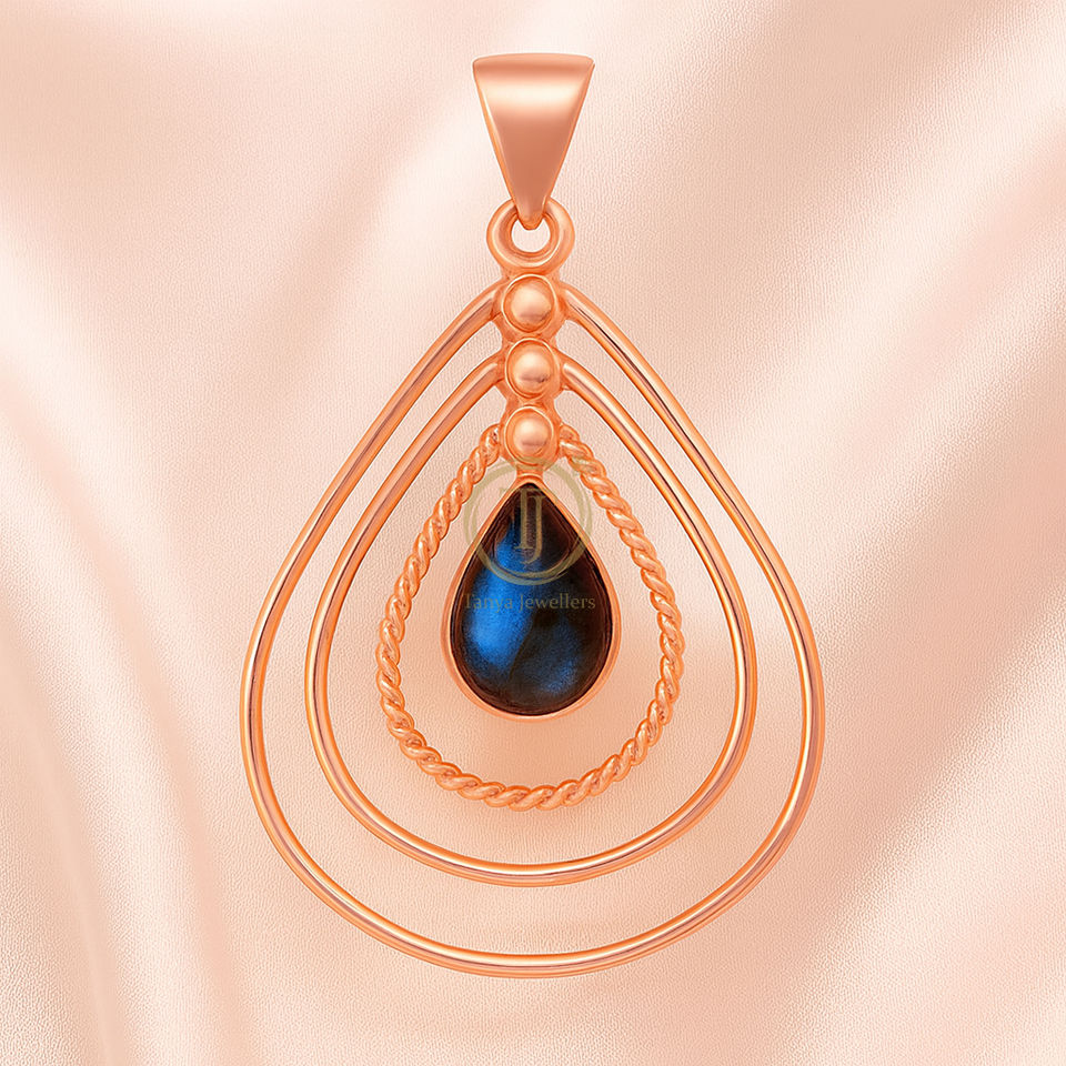 จี้พลอยลาบราดอไรต์สีน้ำเงิน เงินแท้ 925 | จี้เคลือบทองคำสีโรสโกลด์และสีเหลืองทอง | สร้อยคอคริสตัลบำบัดรักษา ของขวัญ