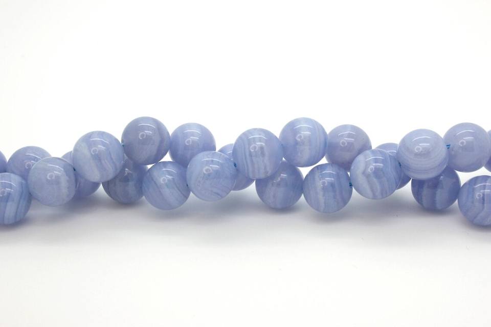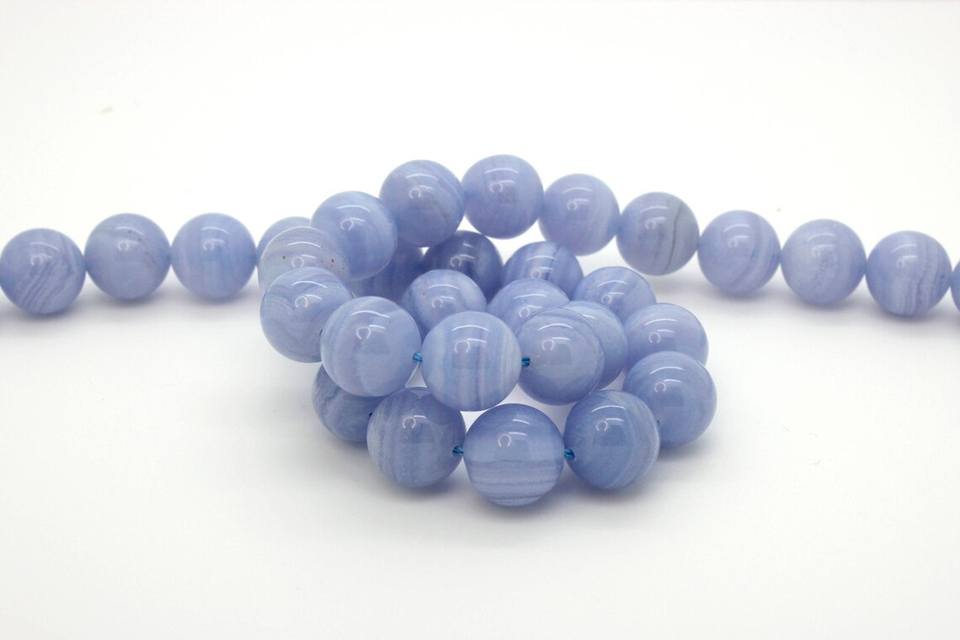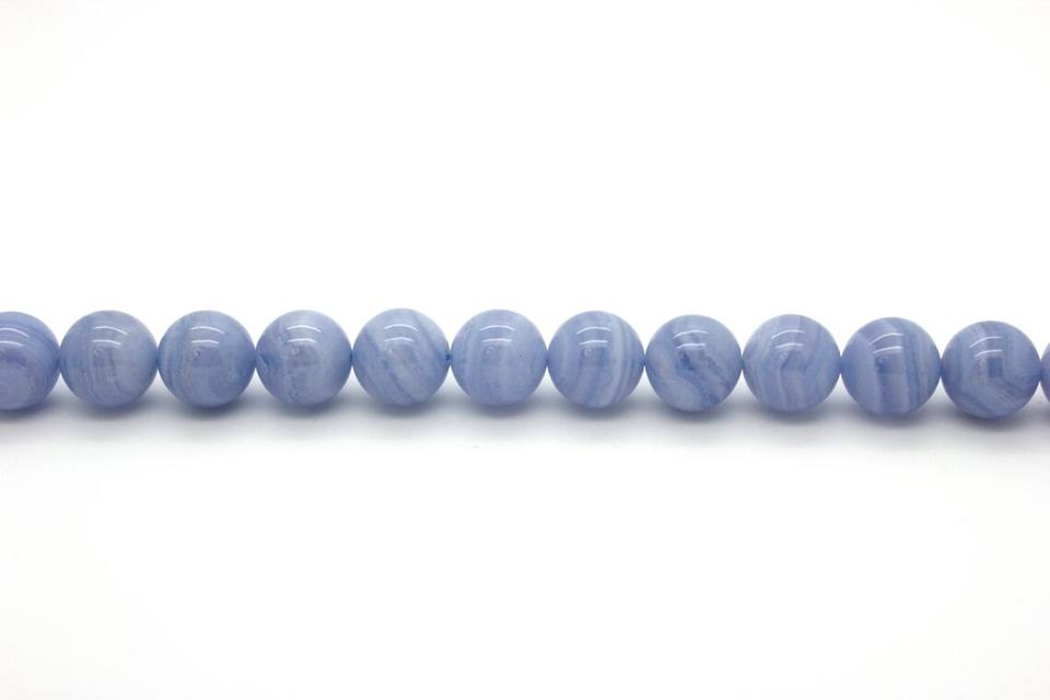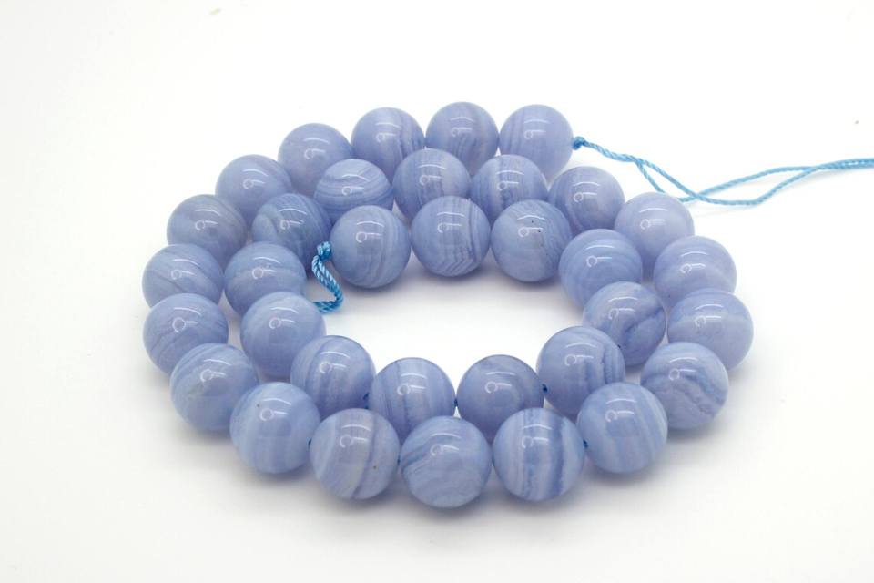 ลูกปัดพลอยอาเกตทรงกลมเรียบลูกไม้สีฟ้า