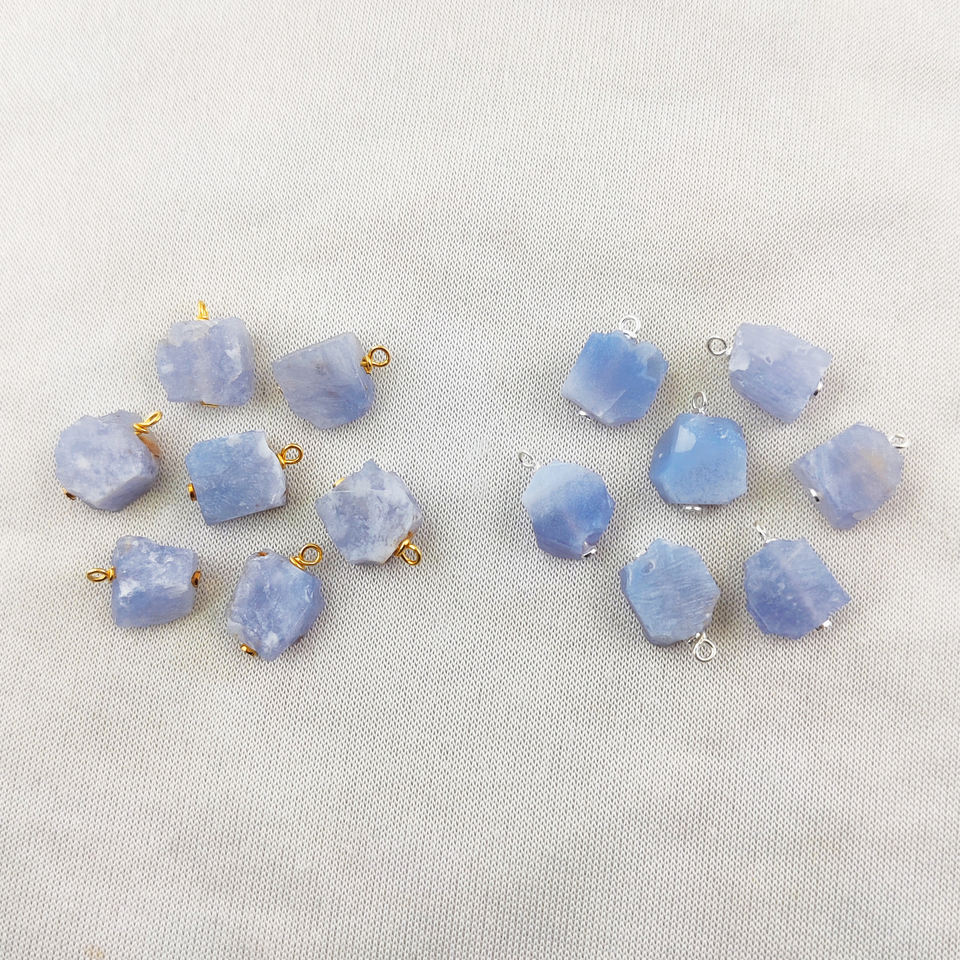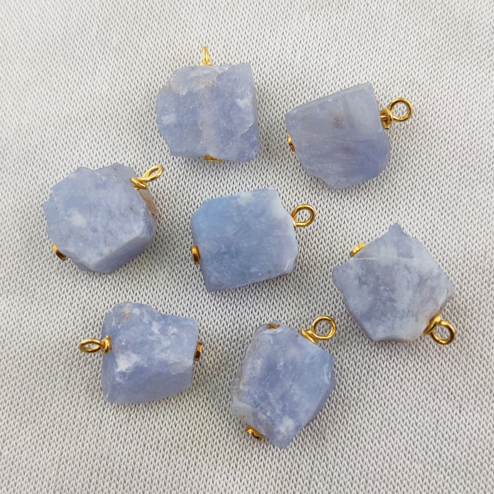 จี้อาเกตลูกไม้สีฟ้าหินวันเกิดหยาบธรรมชาติ8-10มม. สีทอง Vermeil 925สเตอร์ลิงลวดเงินจี้ห่อจี้สร้อยคอจี้