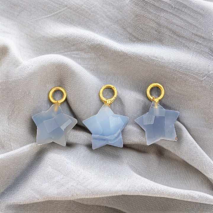 ลูกไม้สีฟ้าอาเกตดาวเสน่ห์ Briolette ตัด10มม. ดาวทองชุบ925จี้เงินสเตอร์ลิงเครื่องประดับทำลูกไม้สีฟ้าอาเกตเสน่ห์