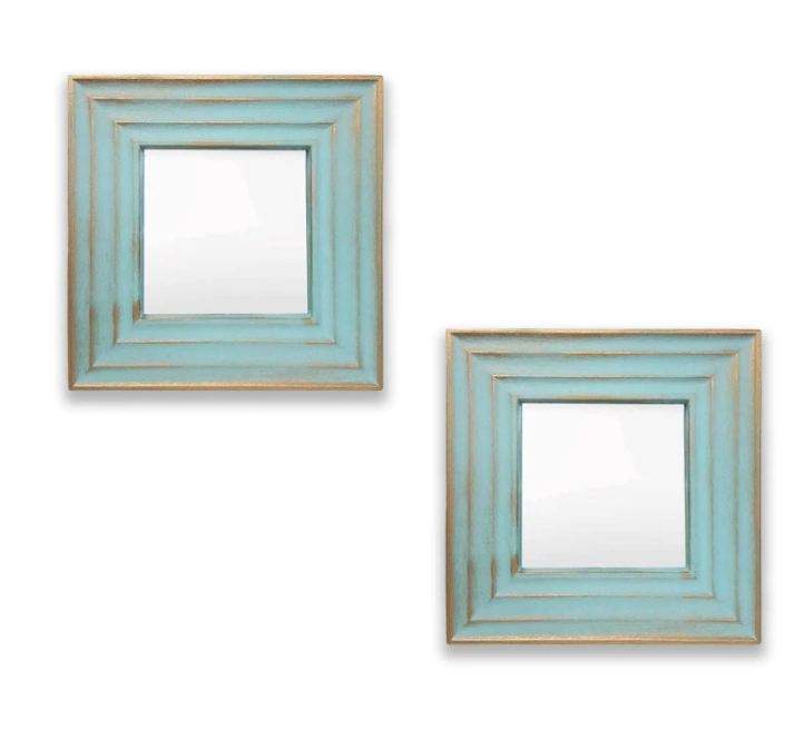 กระจกบานใหญ่สีฟ้าตกแต่งในรูปทรงสี่เหลี่ยมกระจกเหล็กติดผนังตกแต่งสำหรับห้องน้ำกระจก