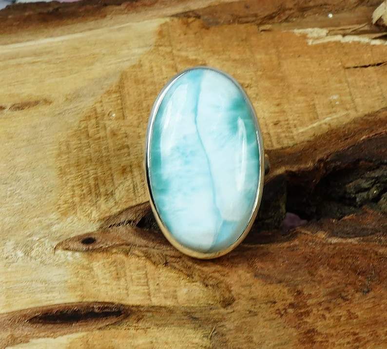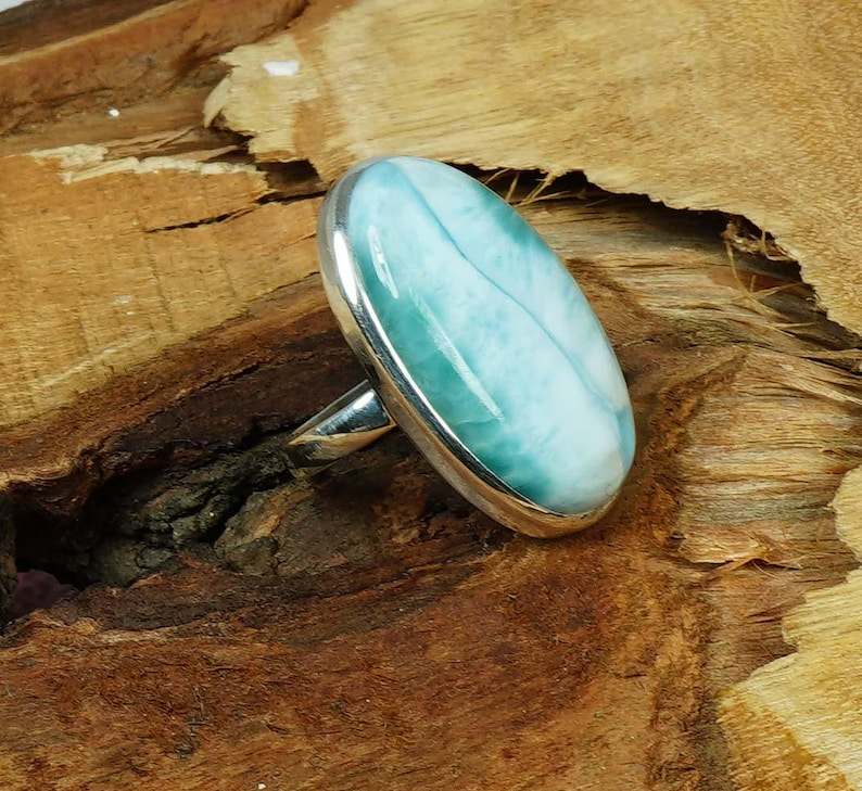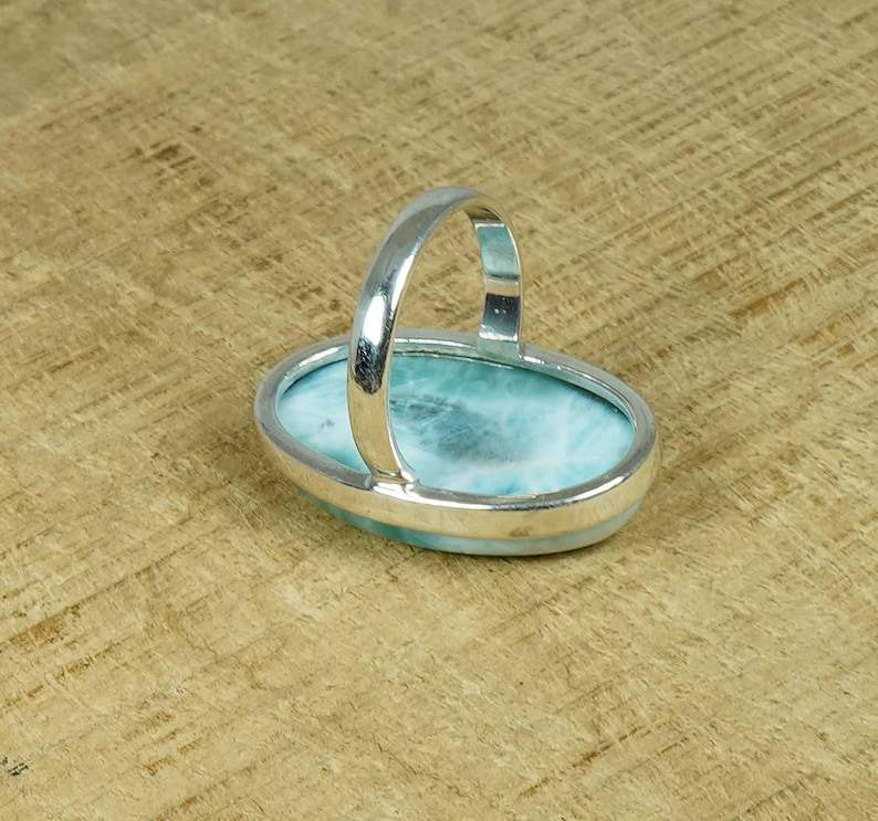 แหวนลาร์ิมาร์สีน้ำเงิน รูปไข่ พลอยแท้ เงินแท้ 925 เครื่องประดับทำมือ แหวนพลอยแคริบเบียน สำหรับผู้หญิง ขายส่ง