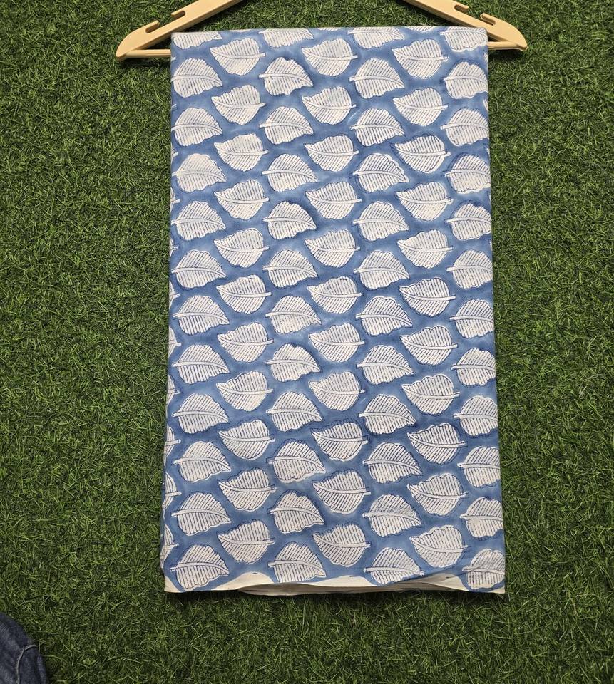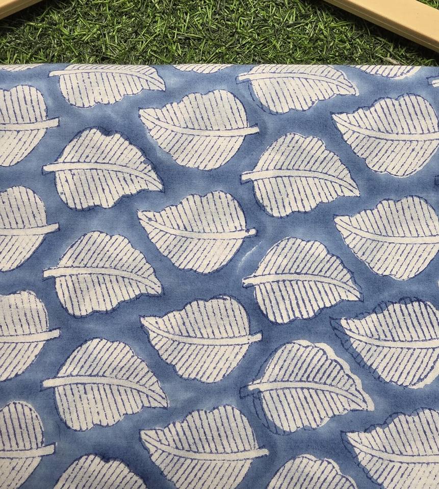 ผ้าฝ้ายถักลายบลูลีฟ 100% ผ้าทอมืออินเดีย วัสดุเย็บผ้า ระบายอากาศได้ดี เป็นมิตรกับสิ่งแวดล้อม นุ่ม เบา น้ำหนักเบา