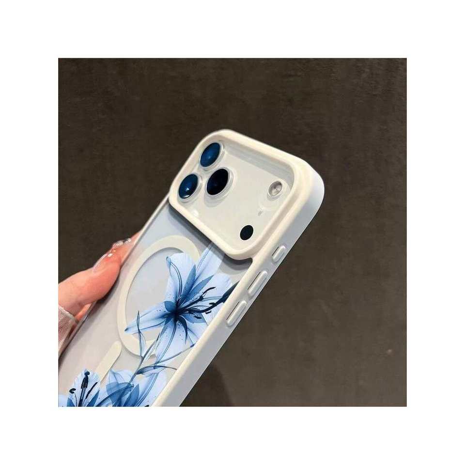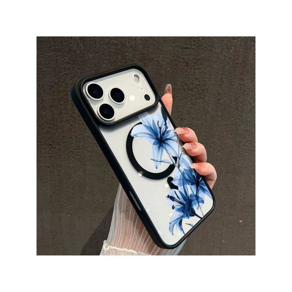 เคสใสลายดอกลิลลี่สีน้ำเงินพร้อมวงแหวนแม่เหล็ก สำหรับ iPhone 17 16 15 14 13 12 Pro Max วัสดุ PMMA