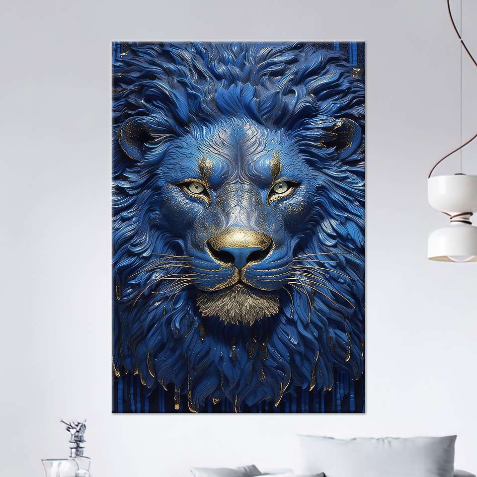 ภาพพิมพ์ศิลปะบนผนังกระจกสิงโตสีน้ำเงิน: ผ้าใบตกแต่งรูปสัตว์คิง, ห่อแกลเลอรี่