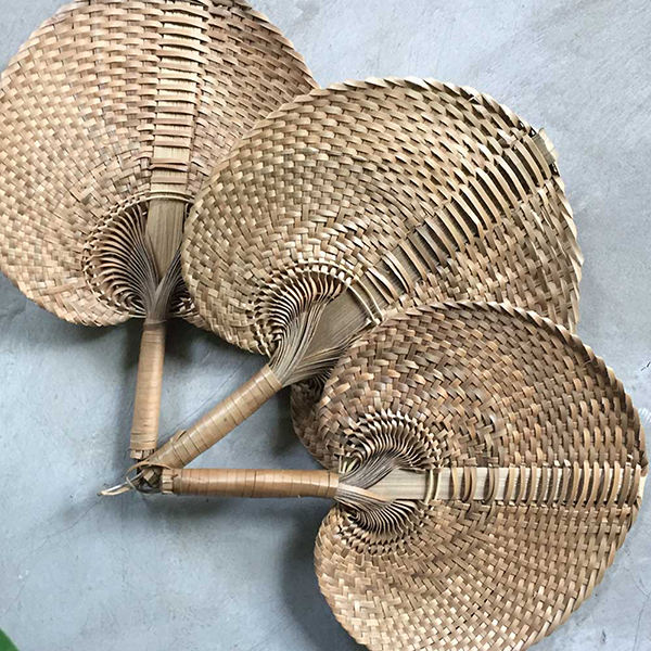 พัดลมมินิราฟเฟียของฟาร์มบลูโลตัส แฟนแฟชั่นใบปาล์มมือถือฤดูร้อนและพัดลมมือถือไม้ไผ่สไตล์วินเทจ