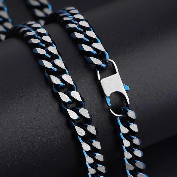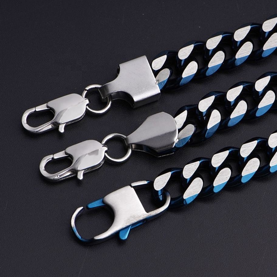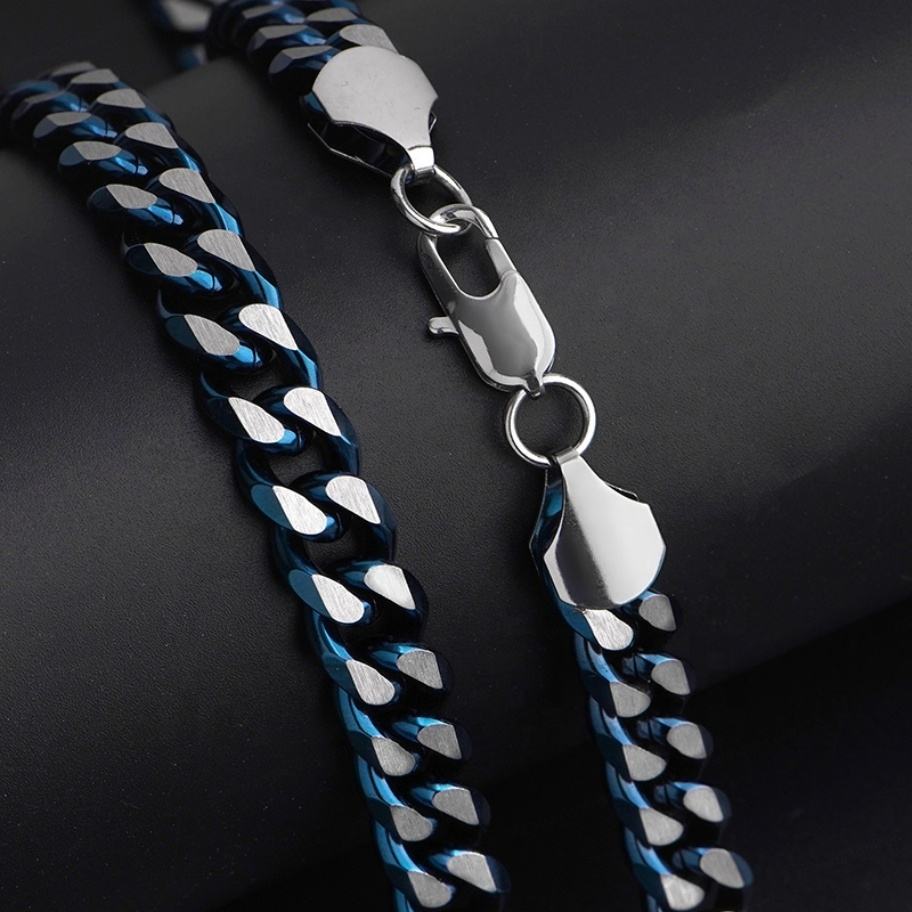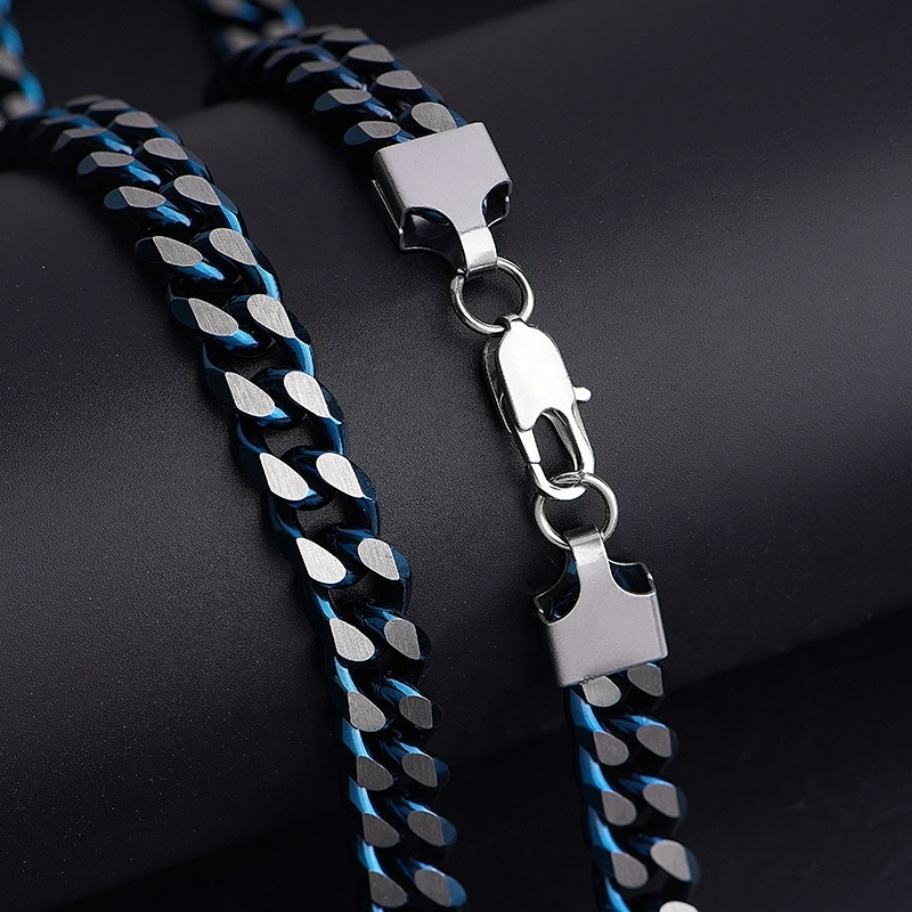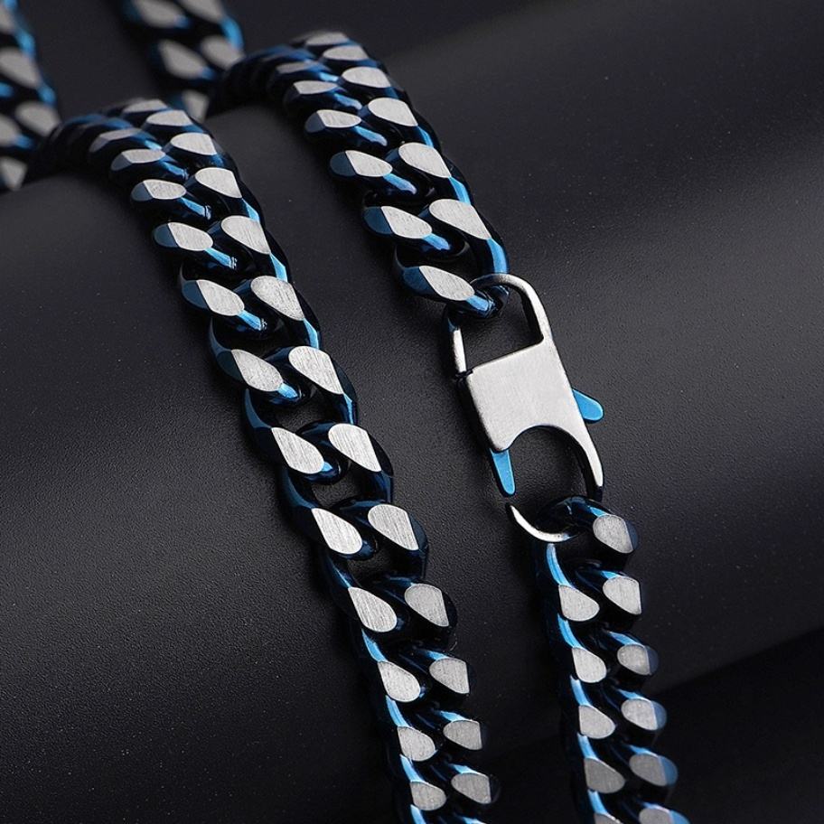 สร้อยคอแฟชั่นสไตล์ไมอามีคิวบัน สีน้ำเงินผสมเหล็กชุบ สร้อยสแตนเลสสำหรับผู้ชาย ราคาขายส่ง