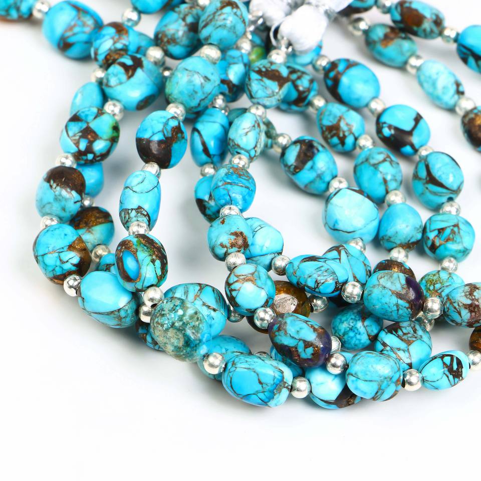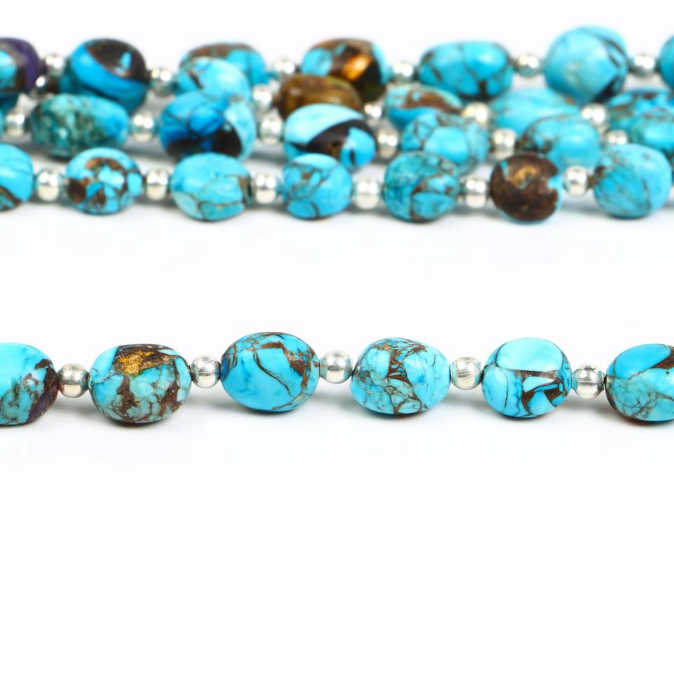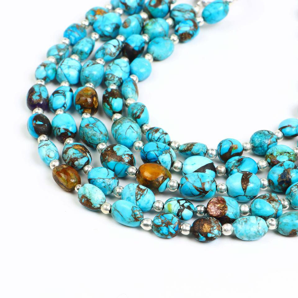 ลูกปัดมอฮาวีสีฟ้าแบบเรียบ ขนาด 6x8-8x10 มม. ลูกปัดพลอยเทอร์ควอยซ์สีน้ำเงินอมทองแดง สำหรับทำเครื่องประดับ ความยาว 8 นิ้ว
