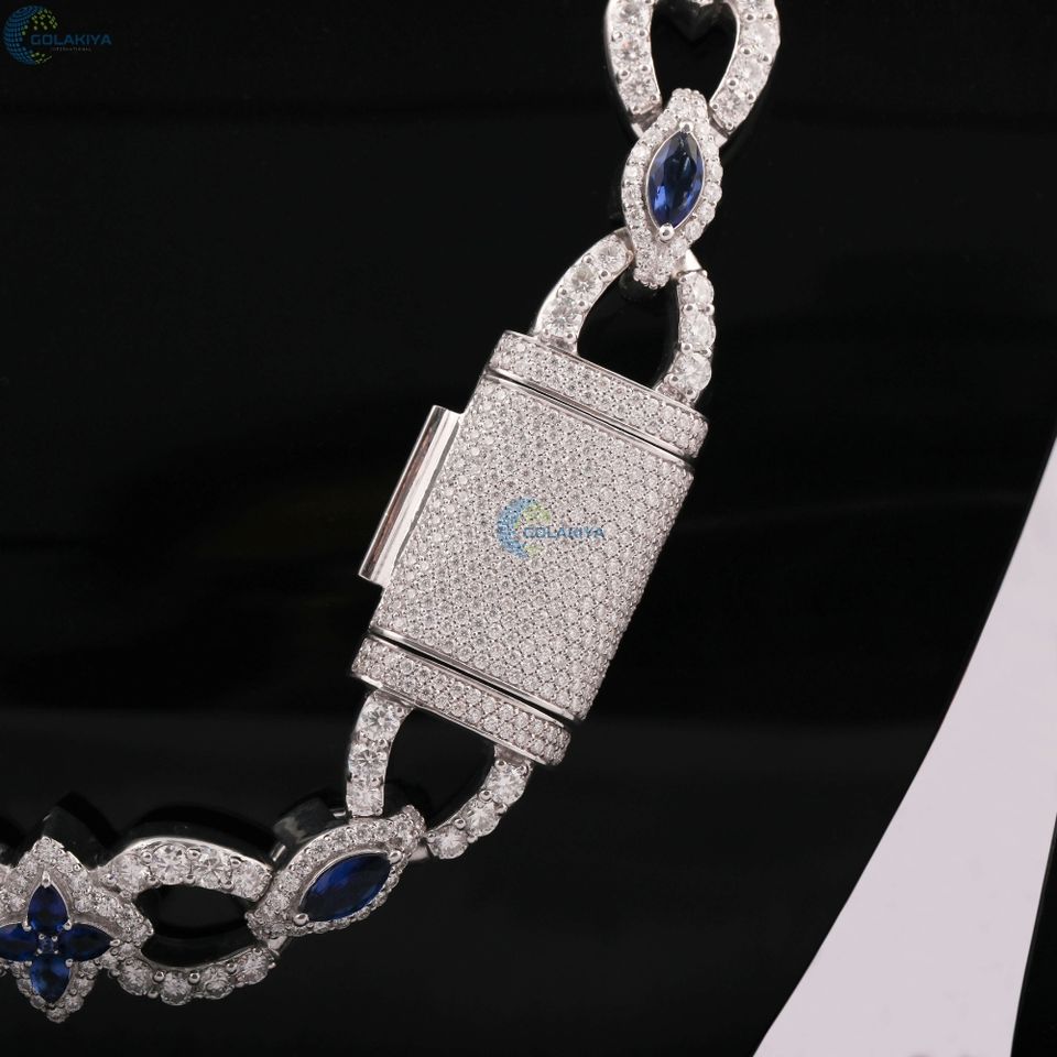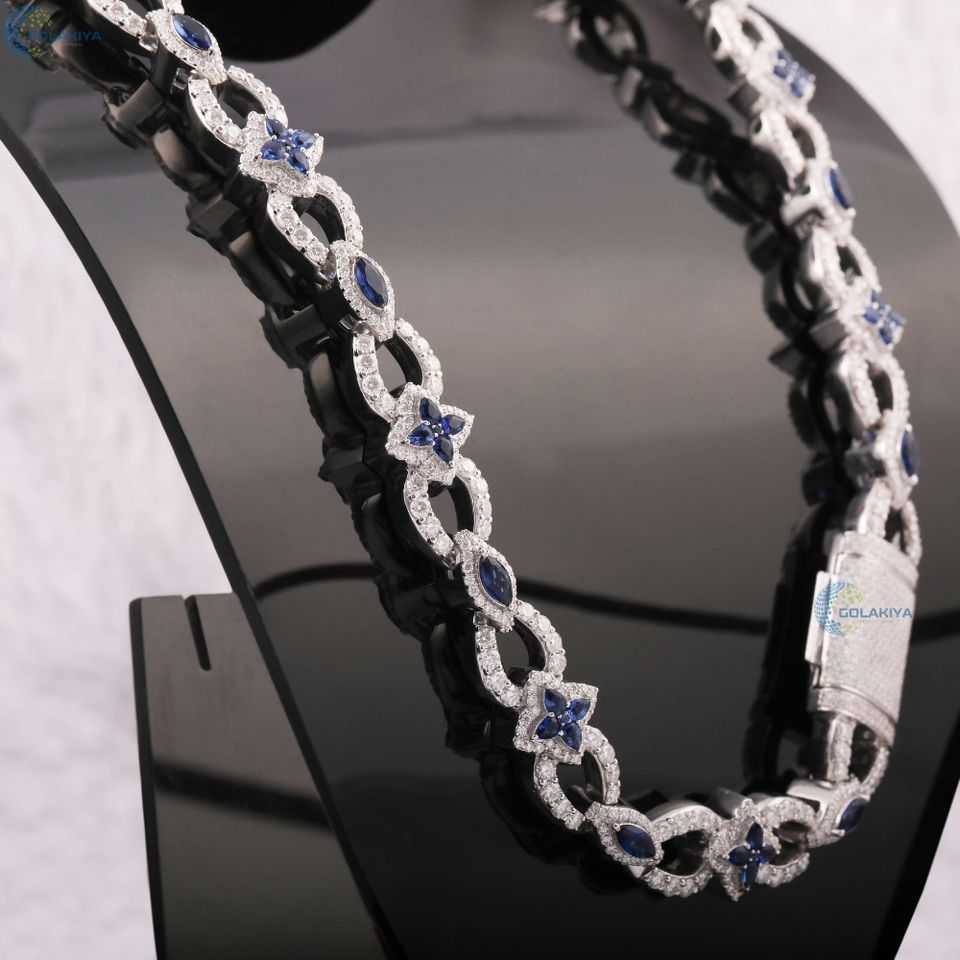 สร้อยคอมอยส์ซอไนต์สีน้ำเงินสำหรับผู้ชายสร้อยคอโคลเวอร์เย็นสายโซ่อินฟินิตี้ของขวัญฮิปฮอปสำหรับเขา